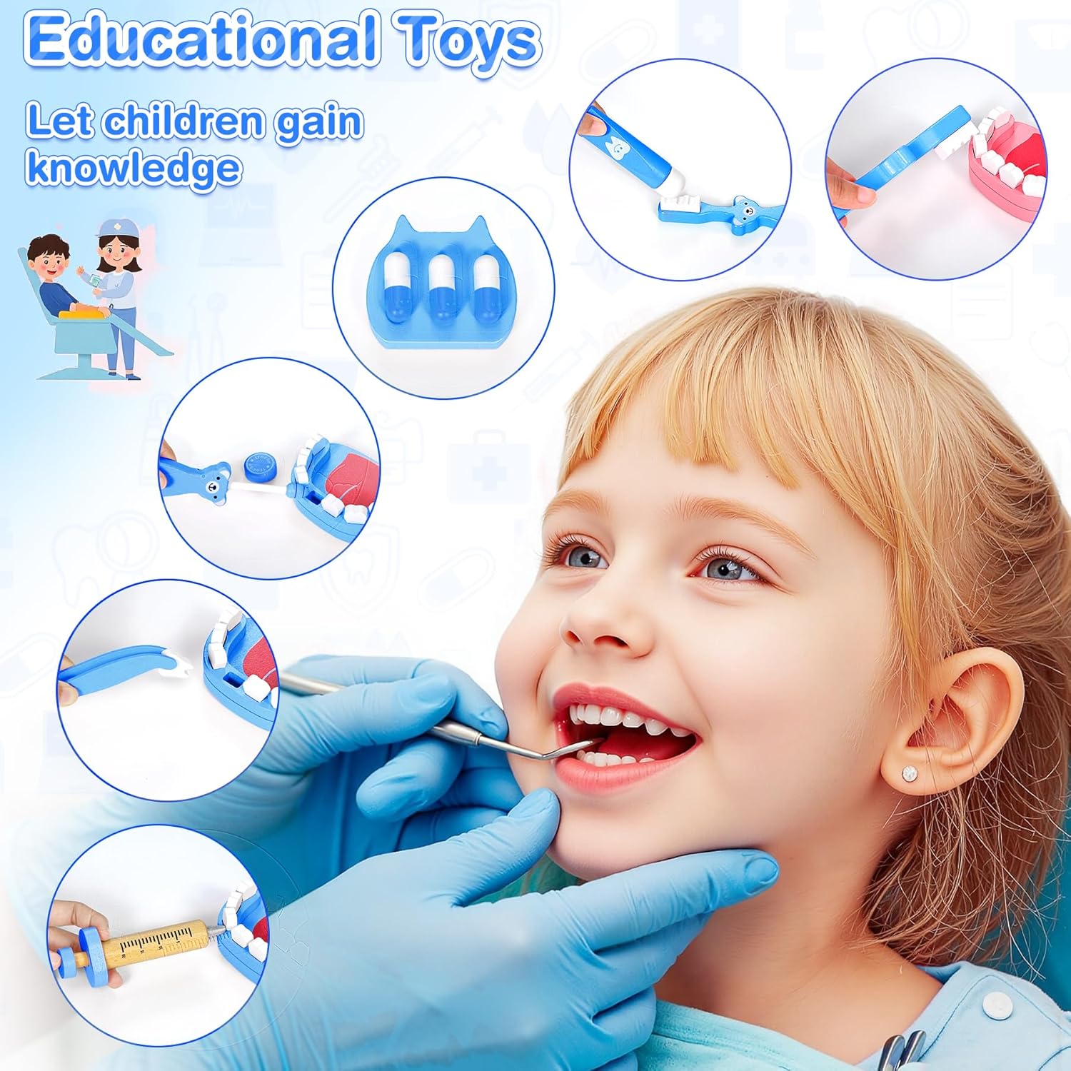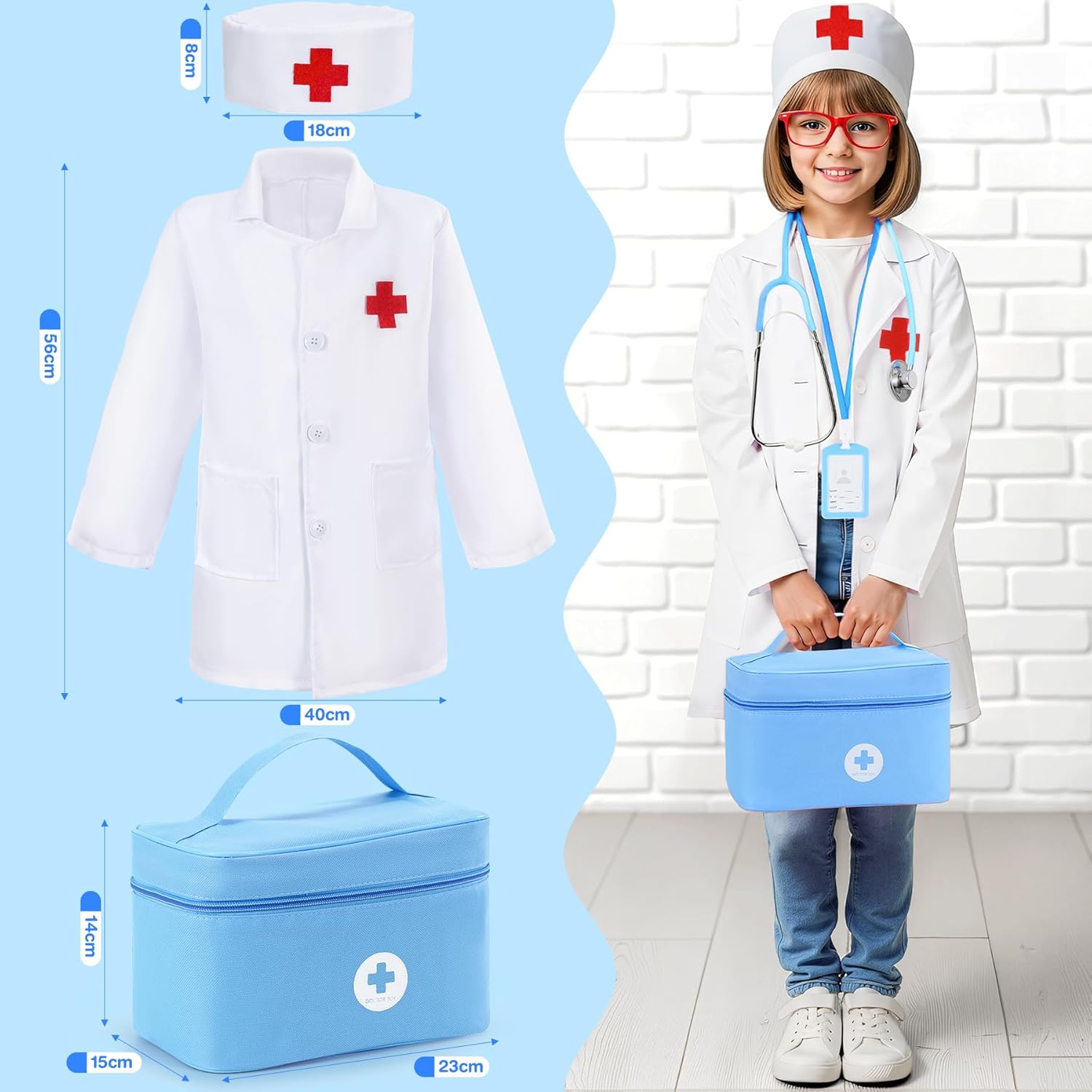 【Giocattolo in legno sicuro da 3 anni】La valigetta del medico è realizzata in legno di alta qualità con bordi lisci e senza schegge. Essendo un robusto giocattolo in legno per bambini dai 3 anni in su, è ideale per le mani dei bambini e soddisfa gli standard di sicurezza comuni. 【I giochi di ruolo per bambini dai 3 anni in su promuovono le abilità sociali】 Il set per bambini Valigetta del medico supporta giochi di ruolo creativi per bambini dai 3 anni in su e aiuta a sviluppare capacità di comunicazione, empatia e fiducia in se stessi attraverso scene quotidiane dell'ambulatorio del medico. 【Giocattoli da dentista per bambini e accessori medici】 Oltre ai classici accessori del kit da medico, il set contiene anche giocattoli da dentista per bambini come modello di dente, spazzolino da denti e dentifricio, ideali per l'educazione precoce alla cura dei denti attraverso il gioco. Vero stetoscopio per bambini e attrezzatura realistica: il set di valigetta da medico per bambini contiene uno stetoscopio per bambini funzionante con suoni del battito cardiaco e numerosi accessori come siringa, termometro, schede di prescrizione e camice da medico per bambini - ideale per giochi di ruolo realistici per bambini dai 3 anni in su. Perfetto come regalo per bambini dai 3 anni in su, regalo di compleanno o regalo di Natale – per ragazzi e ragazze che amano immergersi nei giochi di ruolo per bambini dai 3 anni in su.