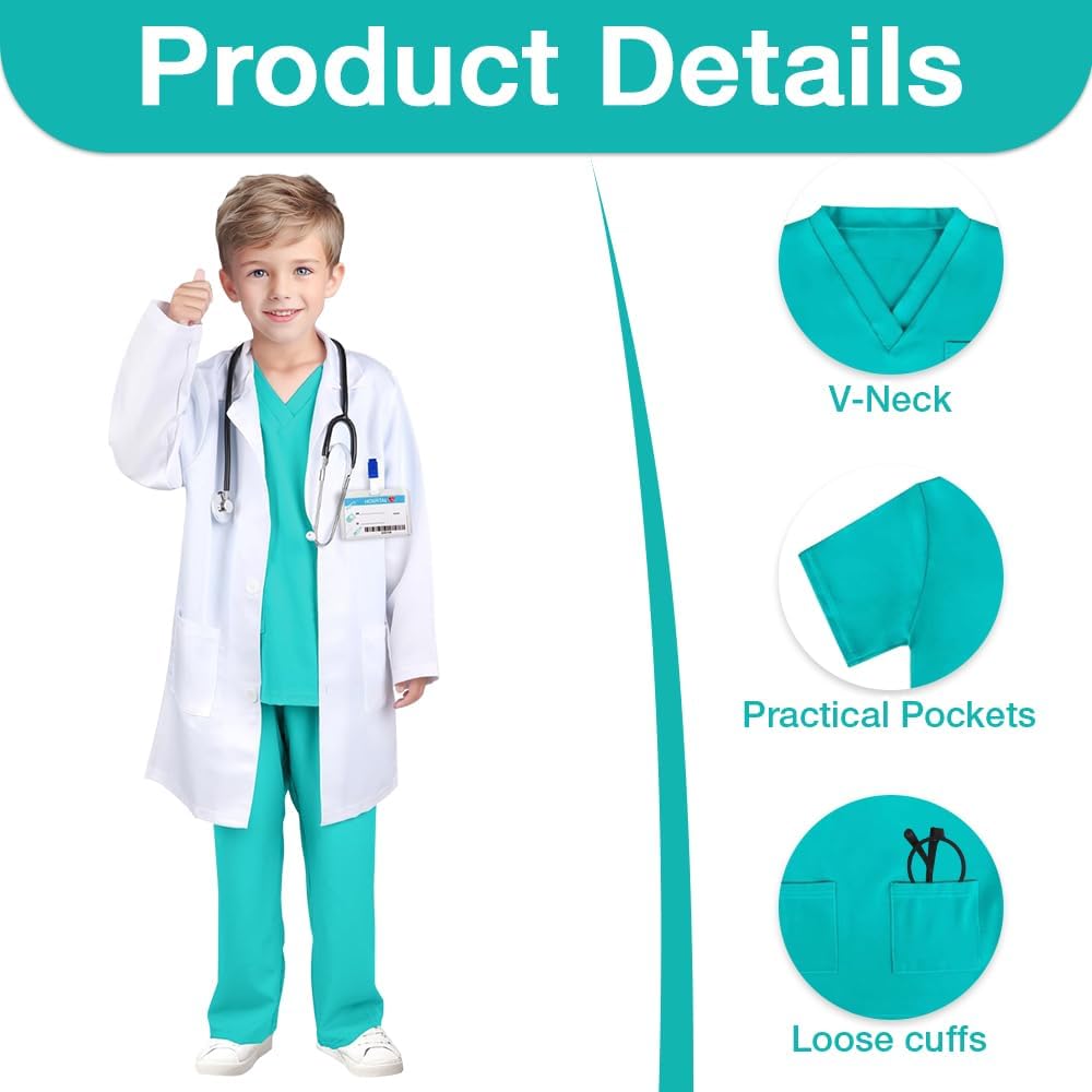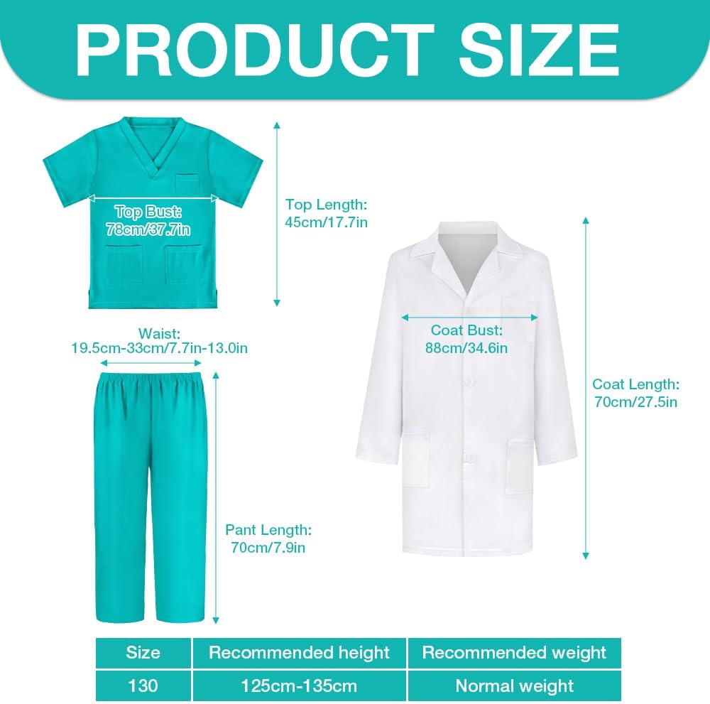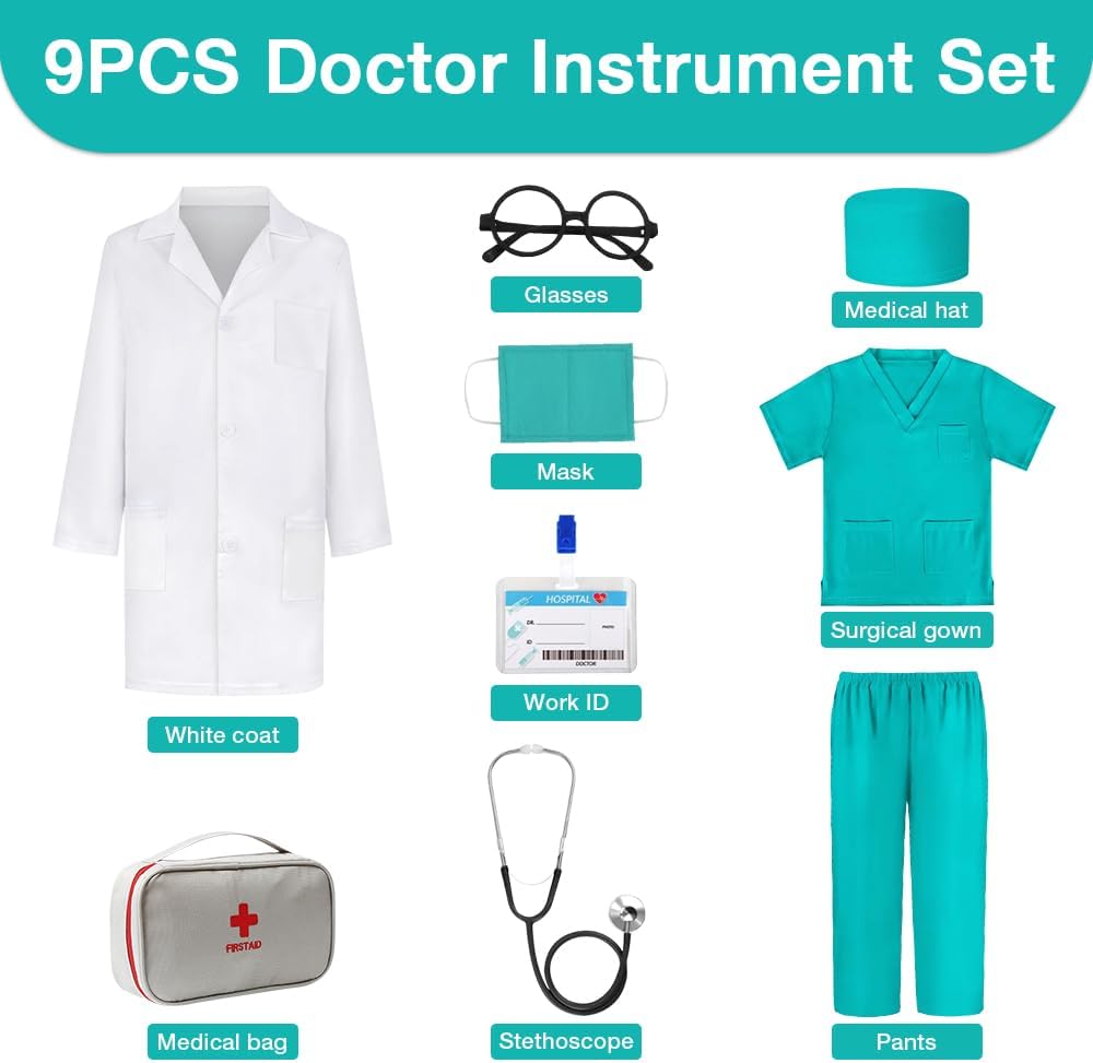 [Valigetta Dottore Bambini]: Compreso camice bianco, tute e pantaloni chirurgici, cuffia medica, maschera, occhiali, stetoscopio, borsa medica, permesso di lavoro, un totale di 9 accessori I bambini possono sperimentare il lavoro di medici e infermieri attraverso il set e goditi il piacere del gioco di ruolo. [Giochi di ruolo]: puoi immaginarti come un medico o un'infermiera Utilizzando Valigetta Dottore Bambini, i bambini possono immergersi meglio nei giochi di ruolo, eliminare la paura dei medici, creare fiducia e stimolare l'immaginazione e stimolare il loro interesse per la medicina. trattamento. [Tessuto confortevole]: Valigetta Dottore Bambini è realizzata in tessuto di poliestere di alta qualità e materiale ABS. Ha una forma realistica, una sensazione confortevole, bordi lisci e arrotondati, non danneggia la pelle dei bambini, è sicura e non tossica ed è molto. adatto da indossare per giochi di ruolo. [Importanza educativa]: i bambini possono interpretare e ricreare scene mediche attraverso Valigetta Dottore Bambini, imparare attraverso i giochi mentre sperimentano il processo medico, apprendere conoscenze mediche, abilità diagnostiche e concetti di primo soccorso, sviluppare l'immaginazione e abilità sociali e aiutare a migliorare la loro comprensione della salute e della consapevolezza sanitaria. [Regalo perfetto]: Camice Dottore Bambino è adatto a ragazzi e ragazze che amano i dottori o i giochi di ruolo. Permette ai bambini di sentire le belle qualità di medici e infermieri, soddisfare la curiosità e il desiderio di conoscenza e aiutare a stabilire concetti sani un regalo perfetto.