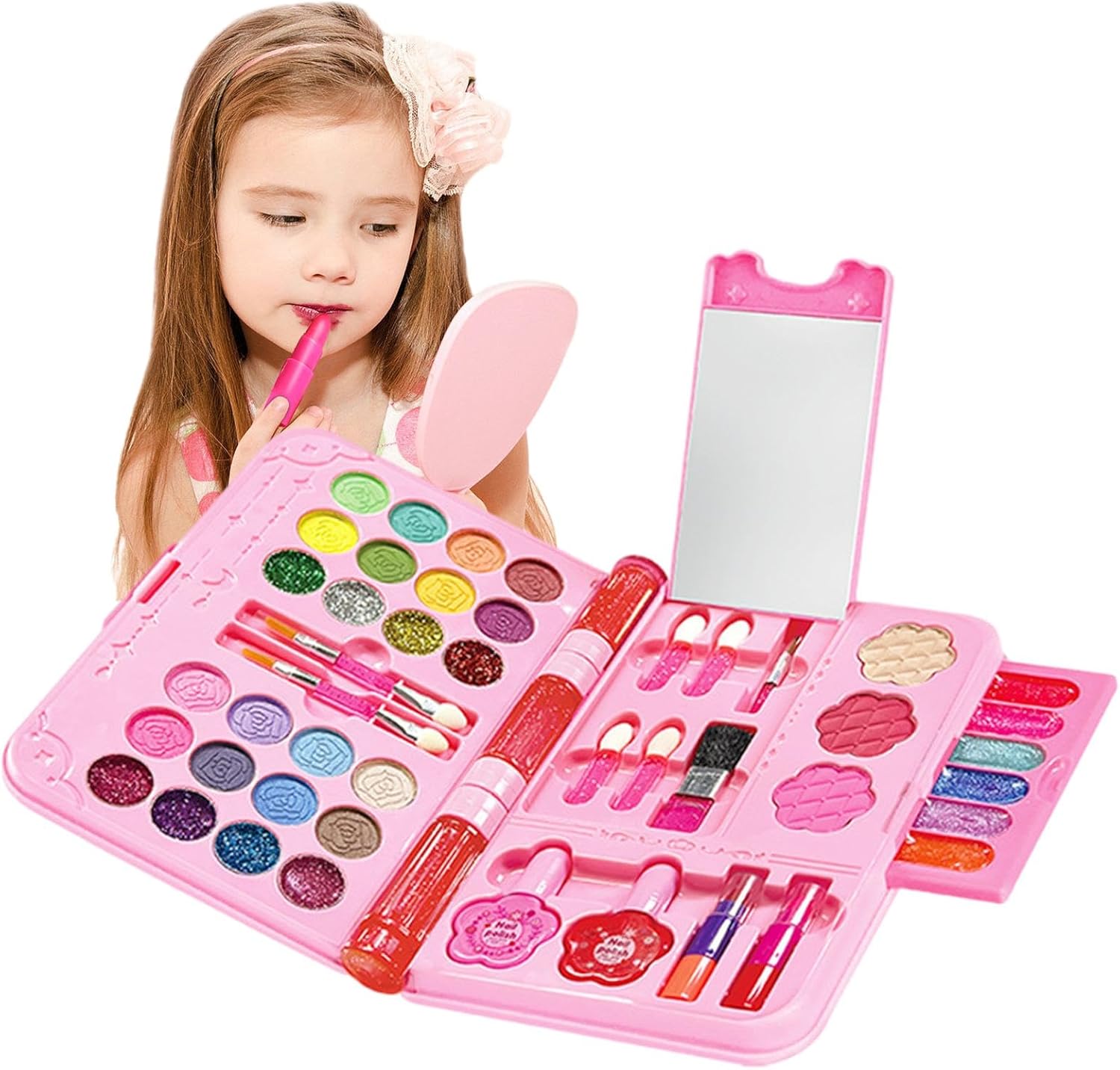 🌸【Valetteria per cosmetici per bambini】: La valigetta per il trucco per ragazze contiene 38 pezzi, rossetto*2, smalto per unghie*3, polvere glitterata*2, lima per unghie*2, polvere*1, adesivo*5, lucidalabbra*2, smalto per labbra*1, matita per sopracciglia*1, mascara*1, tavolozza di ombretti a 6 colori*1, ombretto in madreperla a 3 colori*1, fard*1, nappa*1, pettine*1, trucco pennello*5, fascia*1, cipria sciolta*1, borsa per il trucco*1 🌸【Cosmetici per bambini lavabili e non tossici】: custodia per il trucco per ragazze, set per il trucco per bambini per ragazze, il nostro set per il trucco per bambini è realizzato con materiali sicuri solubili in acqua. Il set trucco per bambini per ragazze può essere lavato via con acqua e sapone, non irrita e perfetto per la pelle dei bambini, trucco per neonati e bambine. Un gioco di ruolo sicuro per i bambini, da rimuovere con un tovagliolo di carta umido e poi lavare. 🌸【Incredibile set trucco per bambini】: valigetta per il trucco per bambini, valigetta per il trucco per ragazze, questo set per il trucco per ragazze con molti set per il trucco e pennelli per ragazze e bambini. I colori sono vibranti e brillanti, perfetti per stimolare la fantasia del tuo bambino. Il beauty case per ragazze contiene tutto ciò di cui una principessa ha bisogno, splendidamente confezionato in un incantevole astuccio per scoprire e soddisfare la sua curiosità e bellezza. 🌸【Educativo e divertente】: Valigetta per il trucco per bambini per ragazze, valigetta per il trucco per bambini, questa borsa ha una maniglia in modo che le ragazze possano trasportarla facilmente in macchina o in vacanza. Una ragazza può facilmente portare con sé la sua amata borsa per cosmetici ovunque. Il nostro set di giocattoli per il trucco lavabile contiene numerosi accessori che ispirano e incoraggiano la creatività, l'immaginazione, l'estetica e l'apprendimento del tuo bambino, offrendo allo stesso tempo un grande divertimento. 🌸【Regalo ideale per ragazze】: set di trucchi per bambini per ragazze, trucco per bambini per ragazze, tua figlia sorriderà e sarà felice quando riceverai questo bellissimo set di trucchi per ragazze. Acquista il set di trucchi per ragazze come regalo per la tua dolce principessa e insegnale. Questo è il regalo di compleanno, il regalo di Halloween, il regalo di Natale e il regalo perfetto per la festa dei bambini per ragazze di 3, 4, 5, 6, 7, 8 e 9 anni.
