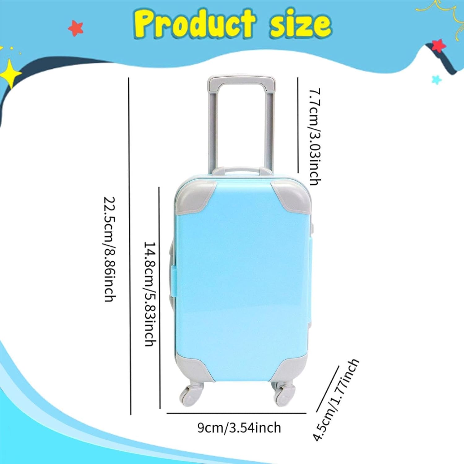 【Gioco di fantasia】: il giocattolo valigia per bambini è più di un semplice accessorio; la creatività e la narrazione. Incoraggia i bambini a sviluppare abilità sociali e di responsabilità, permettendo loro di preparare i bagagli della loro , pianificare e creare emozionanti storie di viaggio. 【Contenitore rigido】: la mini valigia da viaggio presenta un robusto esterno rigido per evitare schiacciamenti e l'ampio interno si apre per riporre piccoli vestiti, scarpe e accessori da viaggio. La custodia si blocca saldamente durante qualsiasi avventura. 【Adatto per bambole da 18 pollici】: Progettato specificamente per ragazze e altre bambole da 18 pollici, la valigia per bambole da 18 pollici è il ideale 【Design realistico e pratico】: la valigia per bambole da 18 pollici è dotata di una maniglia retrattile che si aggancia in posizione e di ruote stabili, rendendo facile per il tuo bambino trascinarla nel suo viaggio immaginario verso l'aeroporto, l'hotel o la destinazione delle vacanze 【Regalo di accessori per bambole】: accessori per bambole sono un regalo perfetto per il compleanno o le feste per qualsiasi amante delle bambole da 18 pollici
