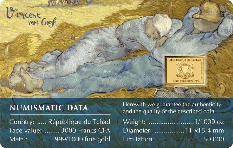 ALTA QUALITÀ - Il prodotto è realizzato con l'oro fino più puro! DESIGN – Puoi vedere il famoso quadro di Vincent van Gogh! LIMITATA – Edizione di soli 50.000 pezzi in tutto il mondo! CONSERVAZIONE – La consegna avviene in una moneta card con certificato di autenticità!