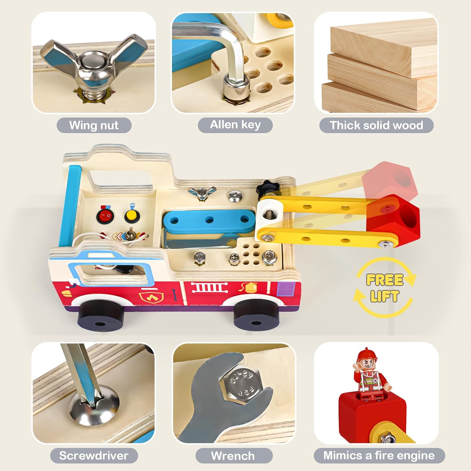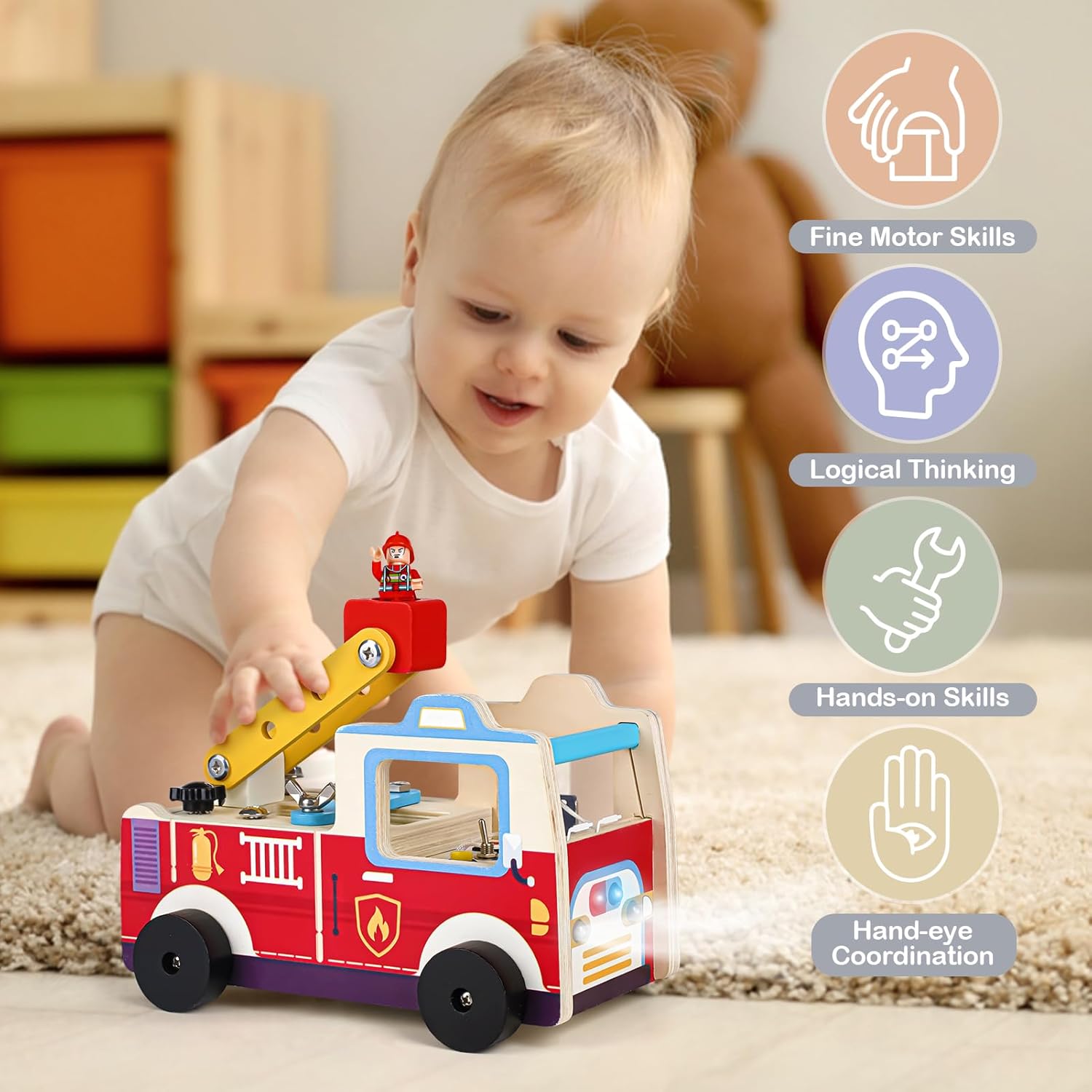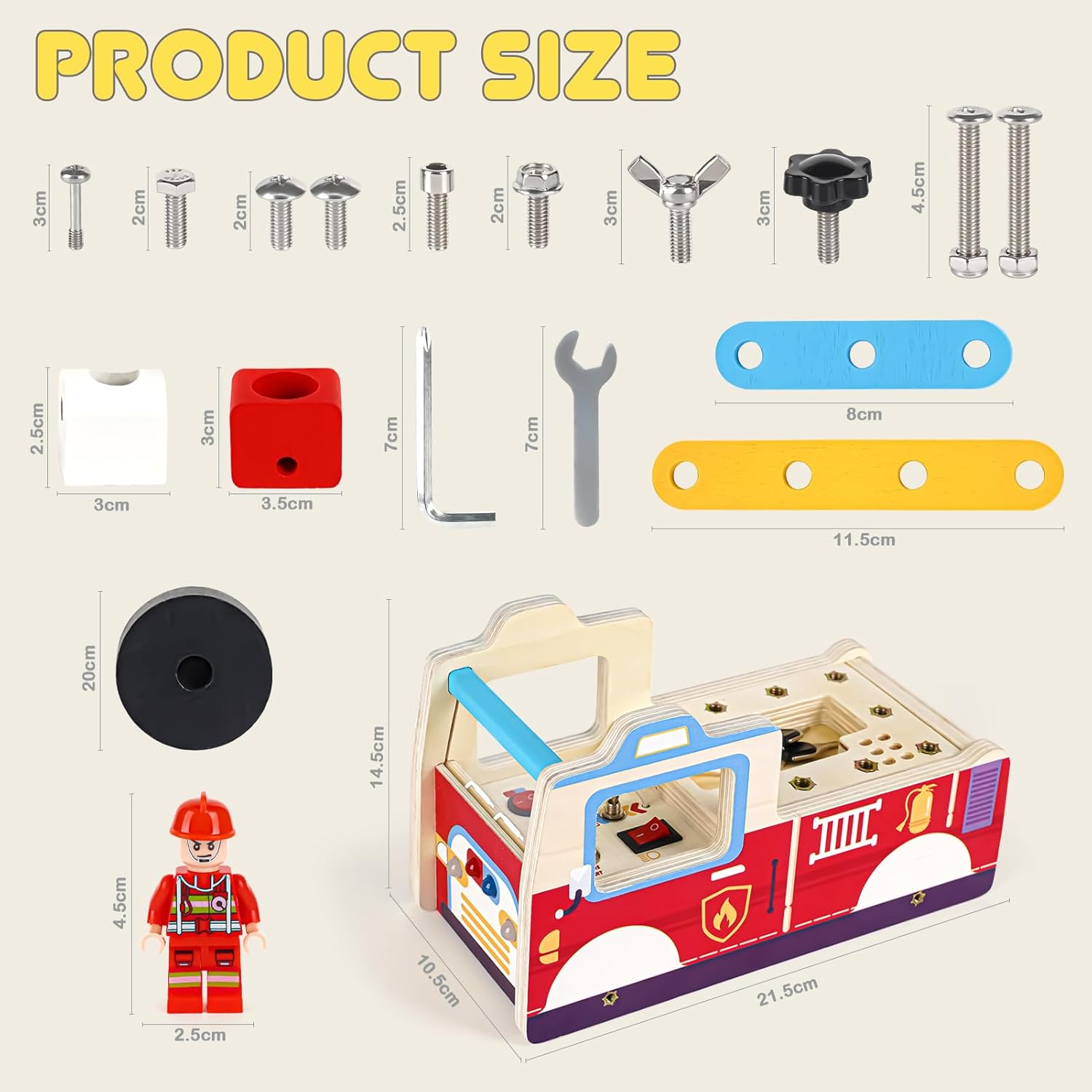 Cassetta Attrezzi Bambini: il giochi montessori è progettato a forma di camion pompieri giocattolo e integra la tavola occupata, l'autopompa e la conoscenza del traffico. Con il cassetta attrezzi bambini, ragazzi e ragazze possono simulare la scena di un salvataggio dei vigili del fuoco e stimolare l'immaginazione dei bambini. Valigetta Attrezzi Bambini: la pedana Montessori offre molte opzioni di gioco e simula un'autopompa con leva del cambio, clacson, chiave, luci di emergenza e luci di posizione anteriori. Il giocattolo semaforico per bambini è inoltre dotato di una scala girevole a 360 gradi può essere regolato manualmente per creare un mondo pieno di esplorazione. Giochi Bambini 3 Anni: L'autopompa è realizzata in legno di alta qualità, il materiale è liscio e non presenta sbavature. I genitori possono lasciarlo ai propri figli senza esitazione. Jouet enfant 3 ans. Giocattoli in Legno: i giocattoli Montessori sono facili da montare; Utilizza viti e cacciaviti per montare e smontare il camion dei pompieri e sviluppare le capacità motorie dei bambini. Giochi bambina 3 4 anni. Cassetta Attrezzi Bambino: i giocattoli da tavolo occupati sono adatti per i compleanni dei bambini, regali di ritorno a scuola, regali di Natale, ecc. Regalo bimbo 3 4 anno. Regalo bimba 3 anni.