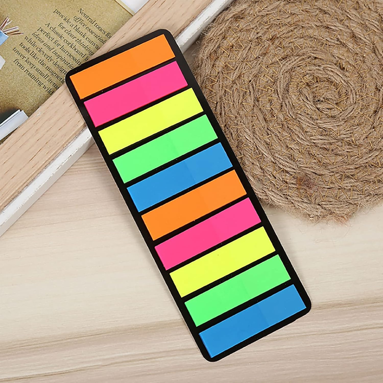 La confezione comprende 2000 bandiere adesive in colori neon assortiti. Le etichette indice illuminate facilitano il contrassegno, l'identificazione o l'evidenziazione di informazioni importanti. Strisce evidenziatori con adesivo forte, facili da staccare, scrittura fluida senza sbavature dovute all'inchiostro della penna. Le etichette adesive colorate possono essere rimosse in modo pulito senza strappare la carta o la pagina. Le schede trasparenti non copriranno o modificheranno in modo permanente il testo, ma attireranno l'attenzione sulle note. Linguette fluorescenti per una facile scrittura e riposizionamento. I marcatori adesivi sono realizzati in plastica chiamata PET. Si consiglia di utilizzare una penna a sfera e una penna a sfera liquida di tipo dritto sui segnapagina a freccia. Le accattivanti schede indice sono perfette per codificare il tuo lavoro, leggere etichette, migliorare l'efficienza del lavoro o dello studio. Linguette autoadesive per ufficio, scuola, casa, apprendimento.