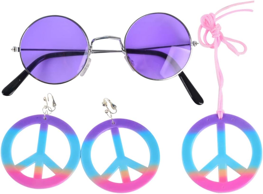 Il pacchetto include 1 paio di orecchini, 1 paio di occhiali, 1 collana Caratteristiche - Dimensioni: orecchini con simbolo della pace circa 7x7x0,2 cm. - Colore: come mostrato. - Materiale: plastica. - Design colorato, occhiali colorati più alla moda e divertenti. - La pace unica lo rende un ciondolo distintivo con il simbolo della pace. - Collana con simbolo della pace realizzata in materiale resistente e sicuro da usare. - Rendi il tuo ciondolo colorato più speciale e attraente. - Non è solo perfetto per l'uso quotidiano, ma è anche un perfetto per le tue amiche. - con lavorazione pregiata e resistente all'usura. Informazioni sulle merci Collana con simbolo della pace Il design creativo la rende più speciale tra tanti decori simili. Ciondolo con simbolo della pace Non esitare più, prendilo e sii il di ogni occasione. Orecchini con simbolo della pace Non è solo perfetto per la decorazione, ma anche un bel . Ciondolo colorato Questo set di accessori per vestirsi è realizzato con per un uso durevole e duraturo