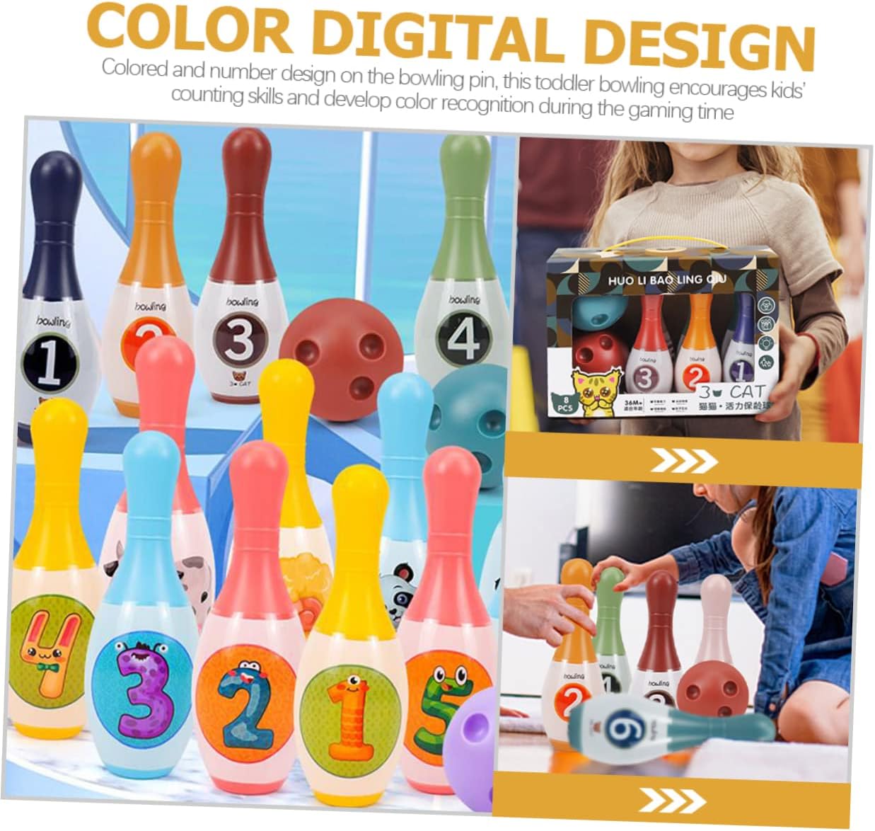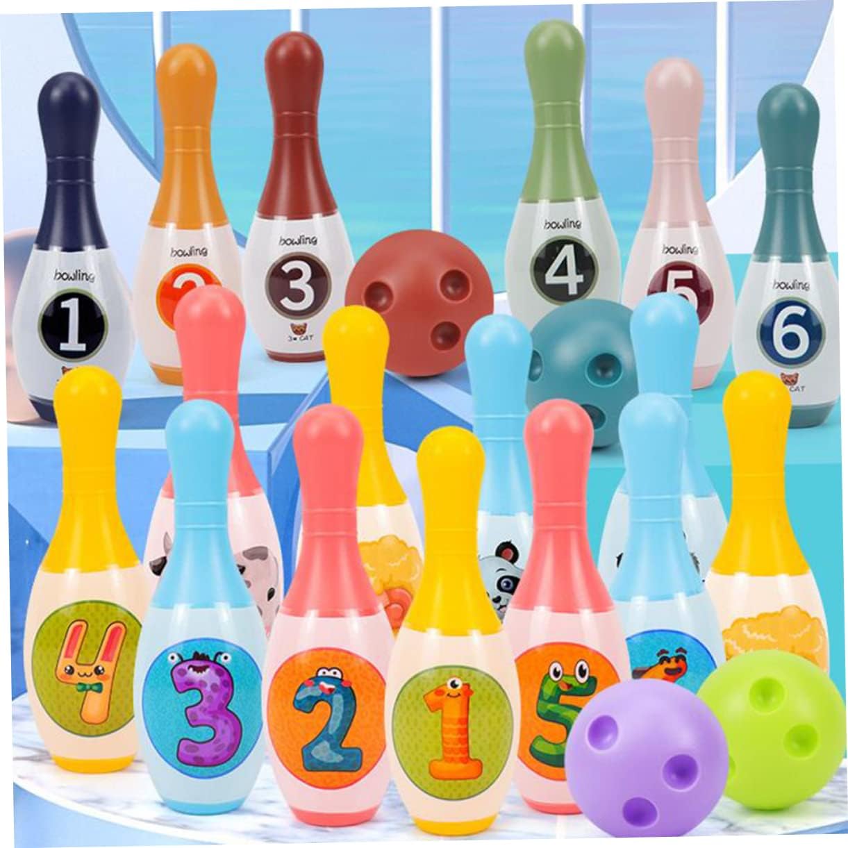 Giochi di bowling: questo set da bowling per interni è molto resistente e utilizzato per molto tempo, bowling sport per bambini: questo set da bowling è meraviglioso e impressionante per i tuoi piccoli o i tuoi amici e sarai felice quando lo riceverai, bowling per bowling al coperto: design di numeri e colori, i bambini possono imparare a contare e riconoscere numeri diversi mentre giocano a bowling, giocattoli sportivi, indoor per: una buona scelta per promuovere la capacità di osservazione e le abilità pratiche dei bambini e anche contribuire a ciò Divertirsi giocando a bowling e bowling in miniatura: famiglia perfetta gioco genitore-figlio, gioco di società, gioco di viaggio, gioco di sport all'aria aperta, questo set da bowling al coperto soddisfa le tue esigenze, birillo da bowling