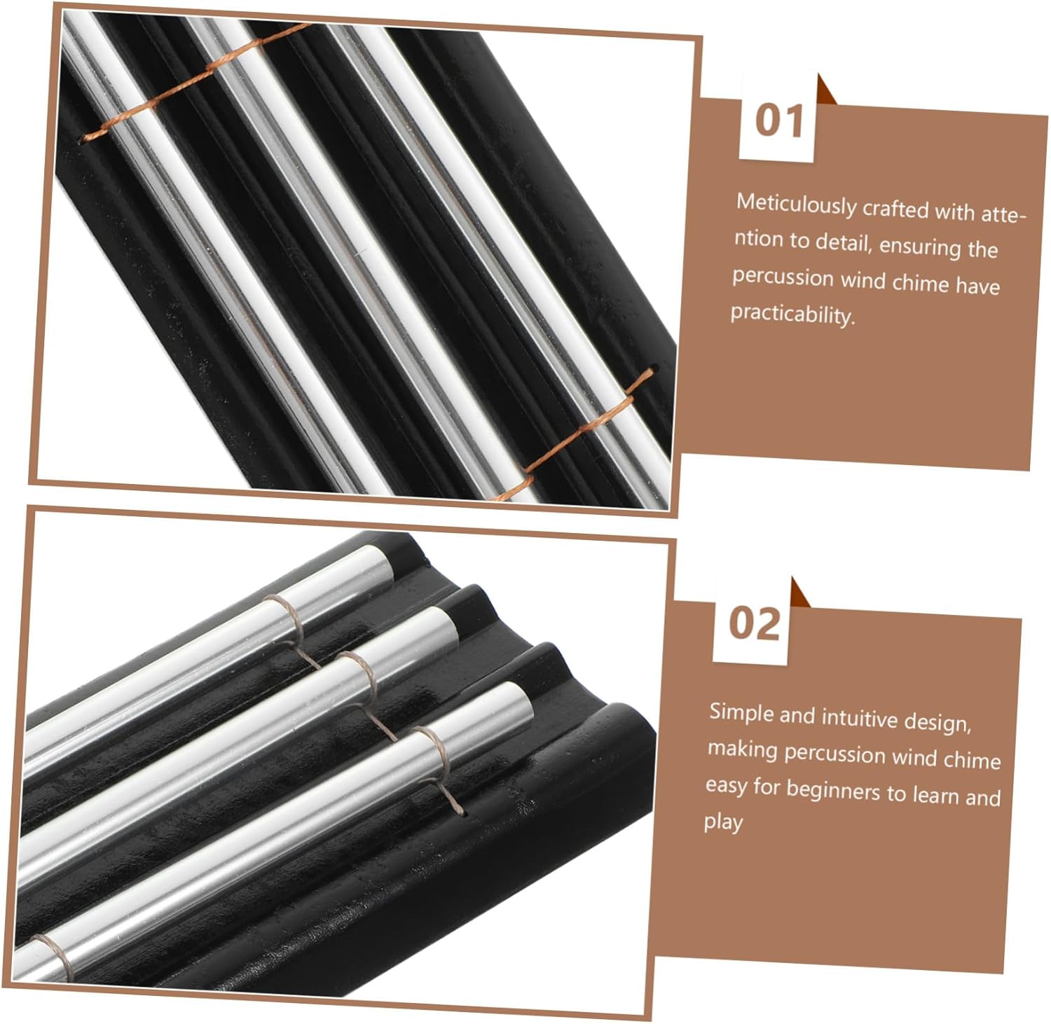 Campanelli manuali: realizzati in metallo e legno, buona fattura, superficie liscia e piacevole al tatto, carillon cilindrici Carillon: carillon, ideali per gli amanti della musica di tutte le età, uno strumento glockenspiel premuroso e unico Strumenti musicali manuali: facili da usare, design semplice e intuitivo, che rendono i campanelli eolici a percussione facili da imparare e utilizzare per i principianti, carillon Strumenti a percussione: adatti per spettacoli solisti e sul palco, danno alla tua musica profondità e dimensione, carillon a percussione strumento glockenspiel con mazzuolo: portatile e leggero, compatto e piccolo, il carillon del vento a percussione è facile da trasportare e riporre, strumento a percussione glockenspiel