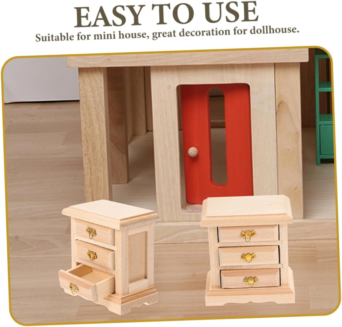 Modello di comodino in miniatura: dimensioni compatte, che rende questo mini comodino in legno adatto per essere posizionato su una scrivania o in un armadio, un mobiletto domestico in miniatura Mobili per casa delle bambole in miniatura: versatile, una decorazione, in particolare una mini decorazione paesaggistica per la casa, fantastico per gli amici, mini comodino in legno Modello di mobili: questi mobili in miniatura per casa delle bambole sono fatti di legno, molto decorativi e durevoli, mobiletto in legno in miniatura Mobili per bambole: questo modello di mini mobiletto è per mini forniture domestiche, molto pratico e decorativo per case delle bambole, modelli di mobili in miniatura Comodino in miniatura: per il lavoro fai da te, puoi rilassati durante il processo fai-da-te e migliora le tue abilità pratiche. mini comodino