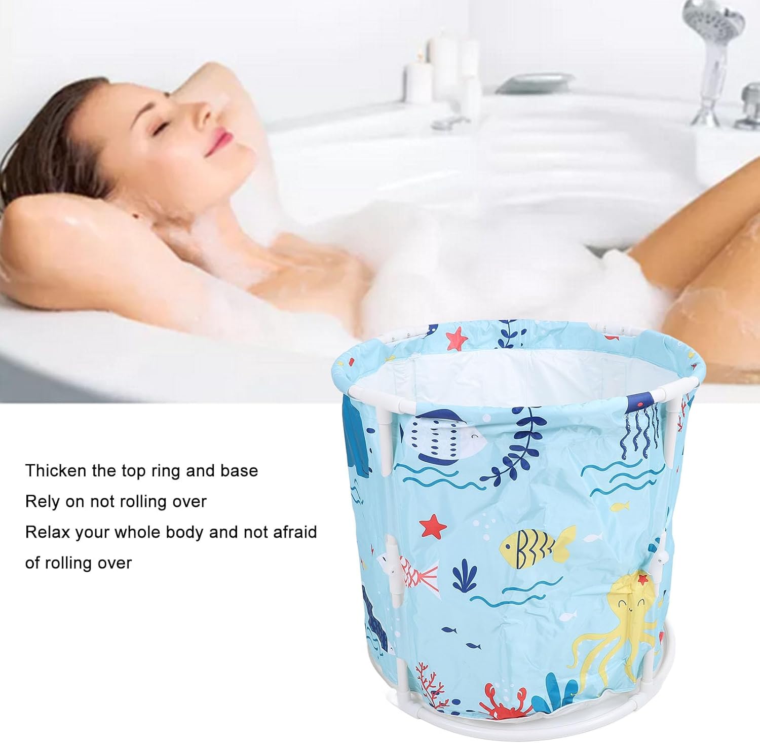 [VASCA PORTATILE] Comodo design pieghevole per riporlo e trasportarlo facilmente. [BAGNO SPA RILASSANTE] Ideale per un'esperienza rilassante di bagno completo per tutte le età. [UTILIZZO VERSATILE] Può essere utilizzato per il bagno, l'ammollo e il lavaggio, soddisfacendo diverse esigenze. [MATERIALI SICURI] Costruito in materiale PVC resistente per un bagno sicuro e confortevole. [RISPARMIO SPAZIALE] Si adatta a piccoli spazi, adatta alle famiglie che cercano una soluzione di vasca compatta.