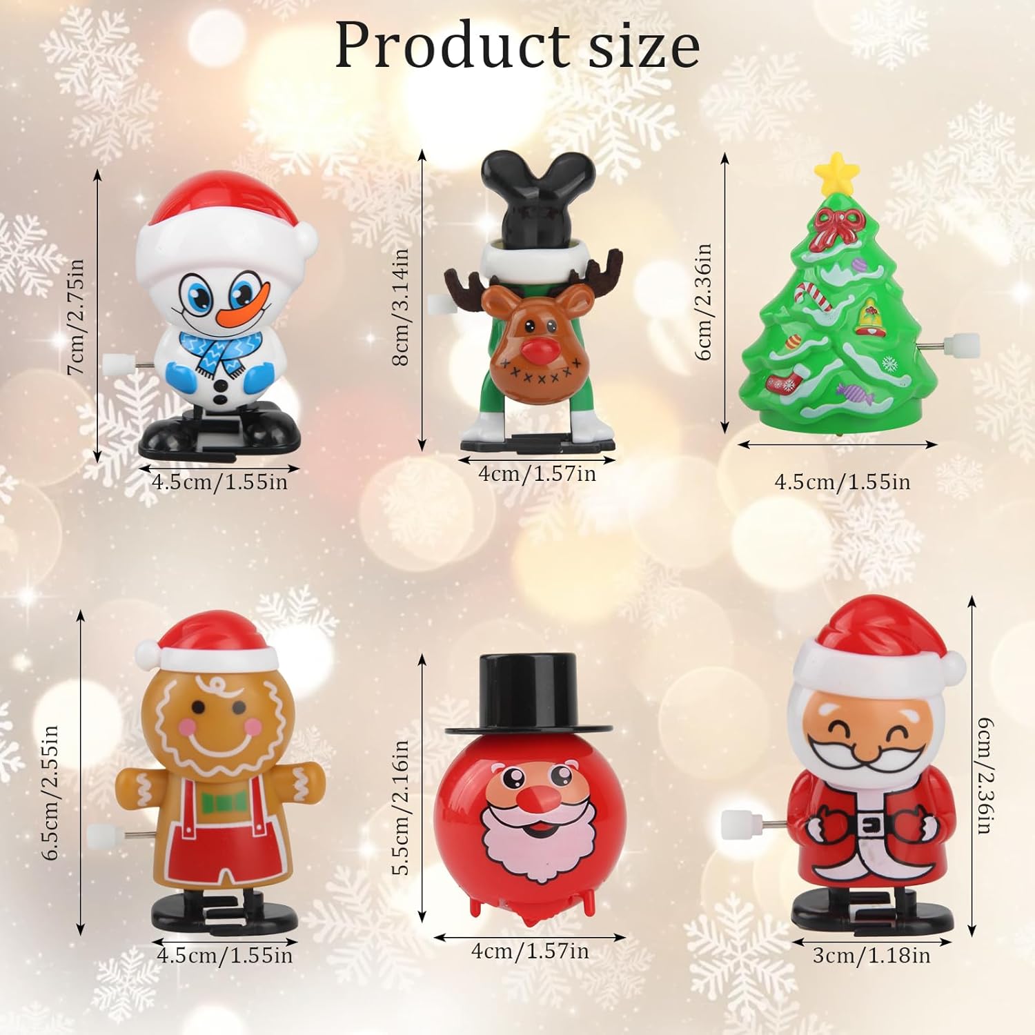 Confezione: Natale giocattoli di carica contiene 6 set di personaggi a tema, tra cui babbo natale, l'omino di pan di zenzero, l'albero di natale, il pupazzo di neve con la testa dondolante, la renna di natale capovolta e il vecchio clown dal naso rosso. Le loro dimensioni sono di 6-8 cm/2.36-3.14 in, immagini classiche delle festività, che ti regalano subito un'atmosfera natalizia completa Materiali di alta qualità: Natale giocattolo a orologeria utilizza materiale ABS di alta qualità, resistente e con una superficie liscia e delicata. È verniciato con vernice a base d'acqua atossica, che garantisce colori vivaci che non sbiadiscono facilmente, rendendo il gioco più sicuro Giocattolo classico a molla: Giocattoli natalizi carica è alimentato da un classico meccanismo a molla. Dopo averlo caricato alcune volte, si muove automaticamente in avanti o oscilla, con movimenti adorabili e un nitido clic meccanico, rendendolo molto divertente Comodo e pratico: Giocattoli a carica manuale natalizi è pronto per giocare con poche rotazioni, con un funzionamento semplice e intuitivo. Funge sia da decorazione da tavolo che da giocattolo interattivo, aggiungendo senza sforzo dinamismo e allegria a qualsiasi occasione Ampia applicazione: Giocattolo a carica natalizia è perfetto come regalo di natale, regalo per feste di compleanno, decorazione per l'albero di natale o per migliorare l'atmosfera festiva sui tavoli da pranzo o sui davanzali delle finestre, rendendolo un piccolo oggetto delizioso per diffondere gioia
