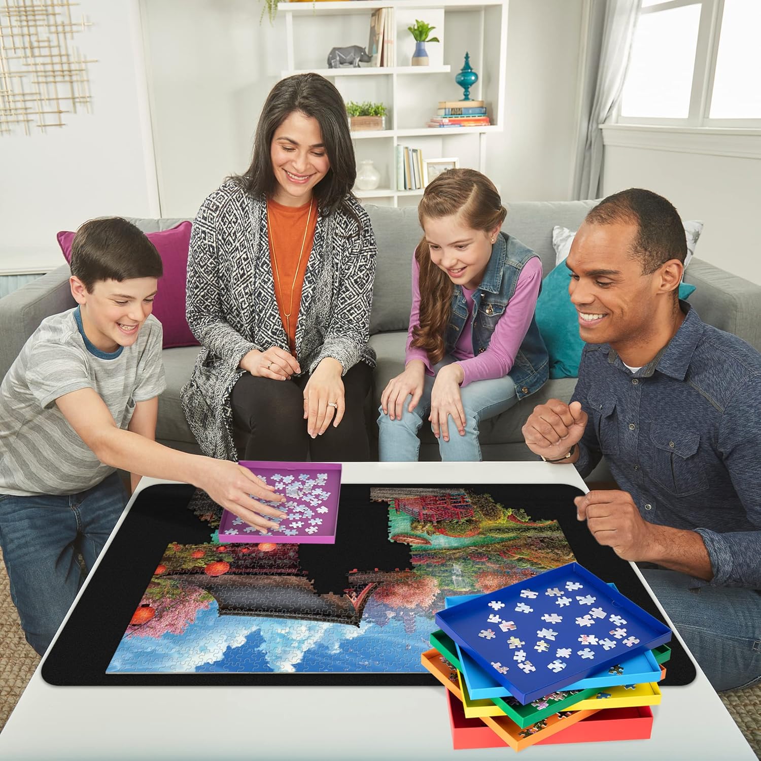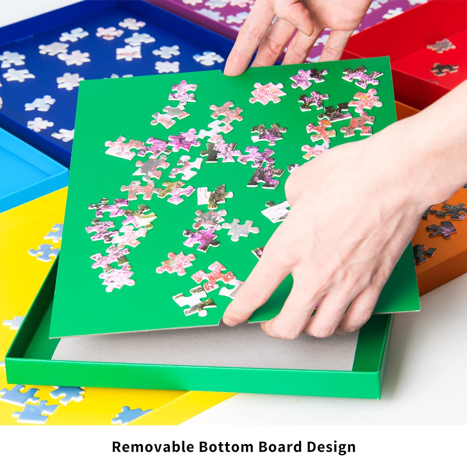 Vassoi di smistamento in 7 colori - Questo set contiene 7 vassoi di smistamento di puzzle in diverse dimensioni e colori e può contenere fino a 1.500 pezzi di puzzle. Progettato per giochi puzzle con sfondi diversi: i vassoi chiari ti consentono di distinguere e trovare pezzi scuri, mentre i vassoi scuri aiutano a evidenziare i pezzi chiari del puzzle. Risparmia tempo e spazio: che tu sia un esperto amante dei puzzle o un principiante che vuole semplicemente migliorare le capacità di risoluzione dei puzzle e l'esperienza complessiva, non cercare oltre i nostri vassoi per smistamento puzzle poiché possono aiutarti a ordinare i pezzi del puzzle e risparmiare tempo e spazio sulla scrivania. Materiale di alta qualità: i nostri vassoi di smistamento sono realizzati in cartone di alta qualità e doppia carta ramata, che garantisce eccellente robustezza e durata e non danneggia l'ambiente. Sicuramente un pezzo essenziale per gli appassionati di puzzle. Design del pannello inferiore rimovibile: ogni vassoio è dotato di un pannello inferiore rimovibile che puoi facilmente estrarre quando desideri trasferire alcuni pezzi del puzzle in un'altra posizione. Scelta regalo ideale: il nostro set di vassoi per smistamento puzzle, una combinazione di design innovativo e praticità, può essere un regalo ideale per te, la tua famiglia o gli amici interessati ai puzzle.