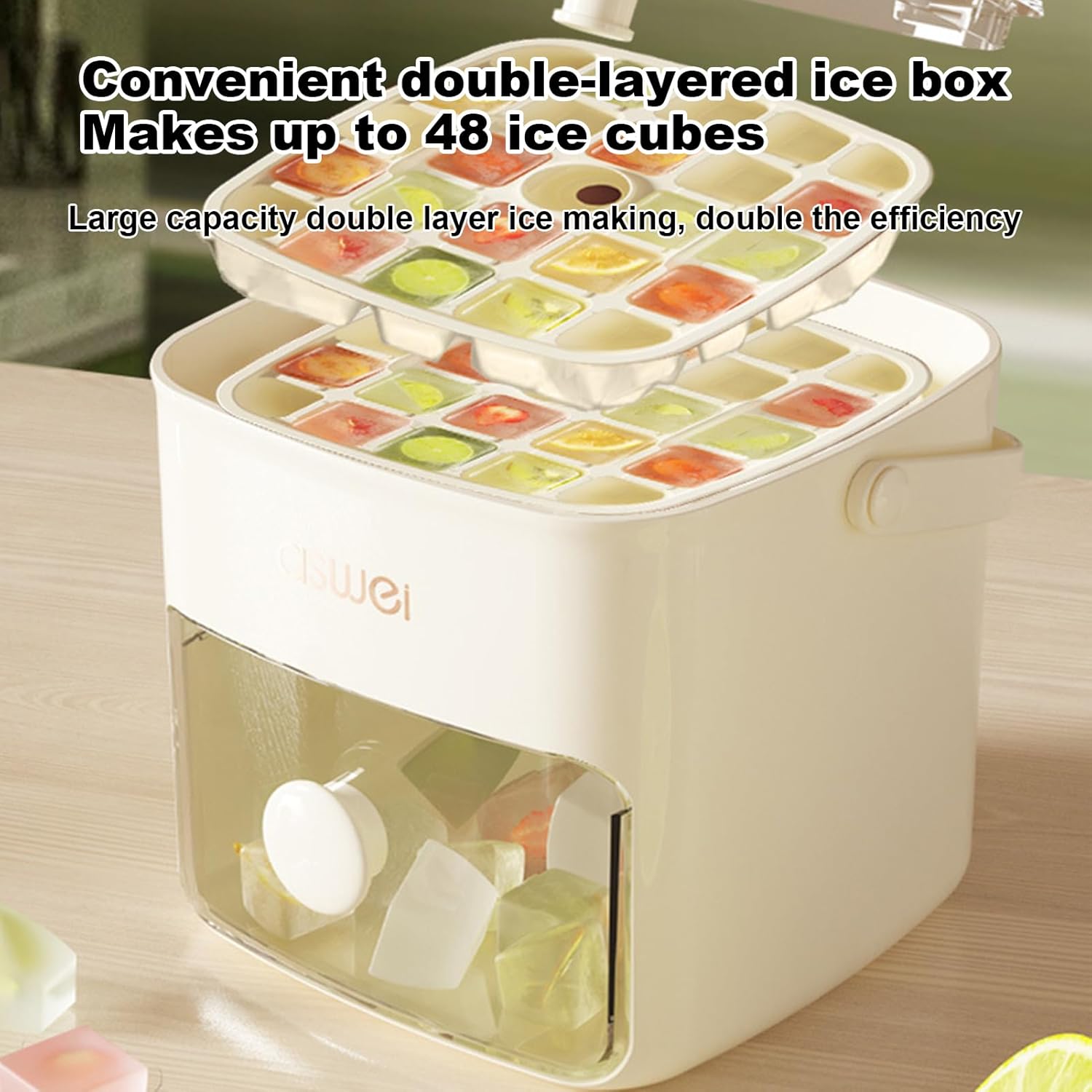 Materiale sicuro]: realizzata con materiali di alta qualità e sicuri per uso alimentare, questa vaschetta per cubetti di ghiaccio è uno strumento da cucina di alta qualità da realizzare in un attimo, gratuito, facile da pulire e riutilizzabile. Facile da usare]: prova la comodità della nostra vaschetta per cubetti di ghiaccio da rilasciare con un solo, semplifica la cura del ghiaccio e garantisce la pulizia. Grande capacità]: il nostro vassoio per cubetti di ghiaccio presenta un design a doppio strato di grande capacità e produce un totale di 48 cubetti di ghiaccio. Ogni strato può produrre 24 cubetti di ghiaccio, consentendo un servizio di ghiaccio più efficiente per soddisfare le tue esigenze di bevande. Facile da spostare]: semplifica la ricerca del ghiaccio con questo vassoio portatile per cubetti di ghiaccio. Una maniglia ispessita e un design portatile facilitano il sollevamento e lo spostamento al massimo, consentendoti di goderti bevande ghiacciate sempre e ovunque. Adatto a molte occasioni]: goditi i normali cubetti di ghiaccio con frutta e succhi per creare una varietà di sapori unici. Perfetto per ogni occasione, il nostro vassoio per cubetti di ghiaccio aggiunge un tocco divertente alle tue bevande preferite con infinite possibilità e una varietà di usi.