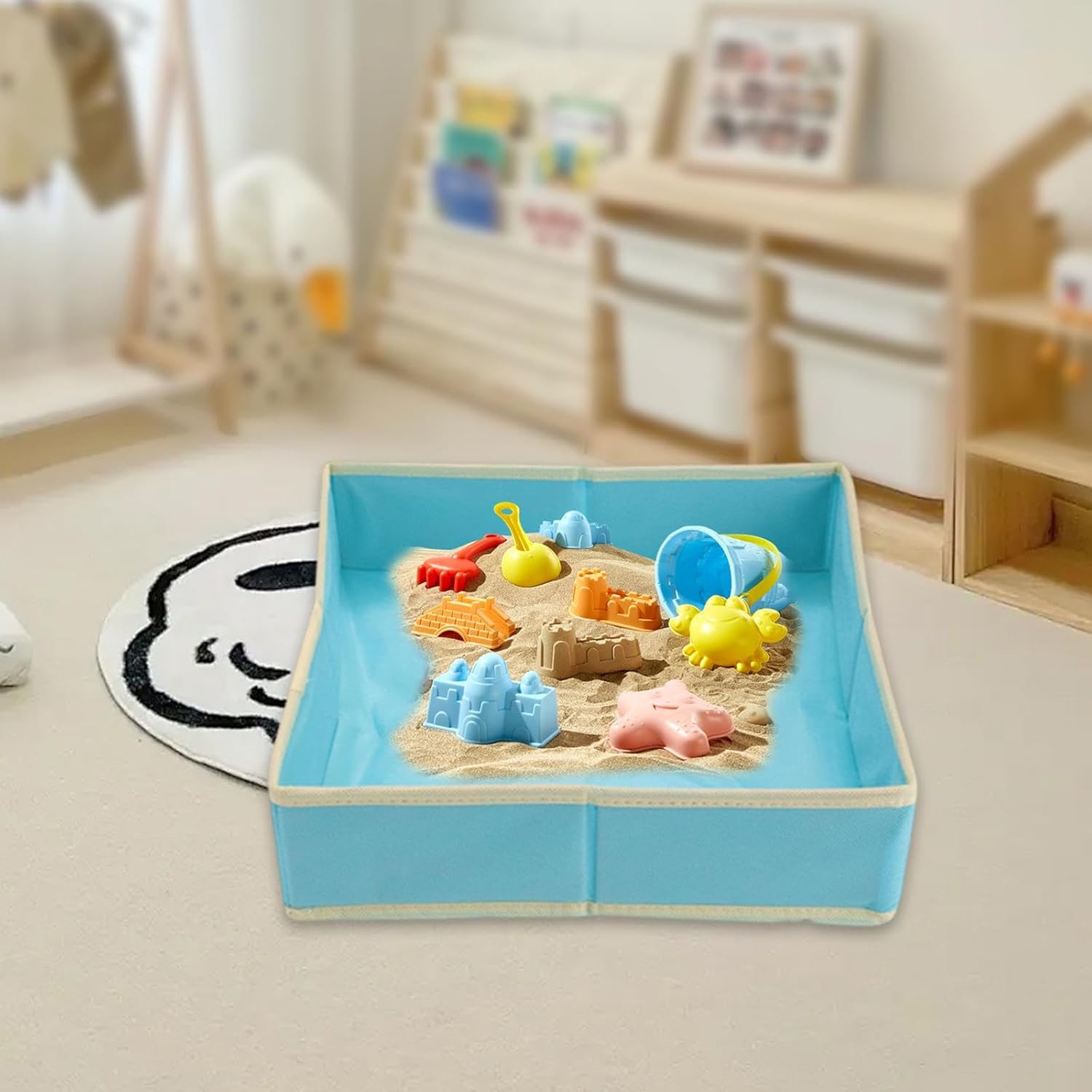 Ampio vassoio per sabbiera ideale per giochi creativi con la sabbia, offre spazio sufficiente per più bambini Realizzato in tessuto non tessuto ispessito per maggiore resistenza e durata durante l'uso intensivo Perfetto per uso in spiaggia, parchi giochi, cortili e asili nido per attività ricreative all'aperto Design facile da trasportare e riporre quando non in uso, pratico per famiglie in movimento Include tutto il necessario per iniziare subito a giocare con la sabbia in modo sicuro e divertente