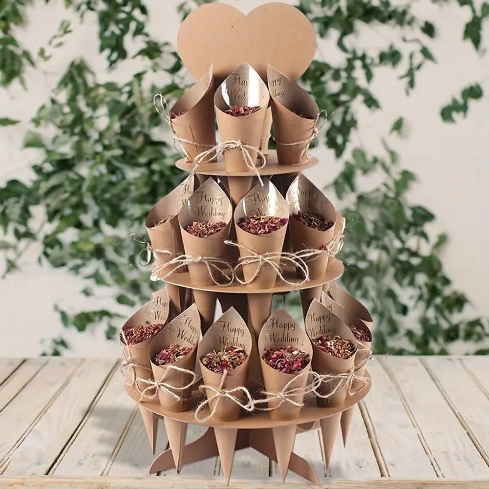 【Pacchetto】Il set comprende 30 adesivi nuziali, 24 pezzi di carta kraft; 1 set di carta; 1 corda; 1 pezzo di colla. Basta seguire i passaggi per piegare la scatola a cono di carta per ottenere una scatola a cono di carta stereoscopica. 【Materiale】 Realizzato con carta di alta qualità, alta qualità, inodore, comodo al tatto. 【Design】 Il cono di carta ti viene inviato come carta piatta anziché come cono. Dopo aver ricevuto la merce, devi solo arrotolare i coriandoli a forma di cono in base alle tue esigenze. Ampia applicazione: il vassoio di supporto in carta per coni di coriandoli è molto adatto per riempire petali secchi, coriandoli, ecc. È adatto per fidanzamenti, feste, compleanni, matrimoni e altre attività, rendendo la tua vita cerimoniale più colorata. 【Multicolore】Scatola a cono di carta cono di carta con 24 fori, 2 colori tra cui scegliere, colore kraft o , per soddisfare le tue esigenze di colori diversi.
