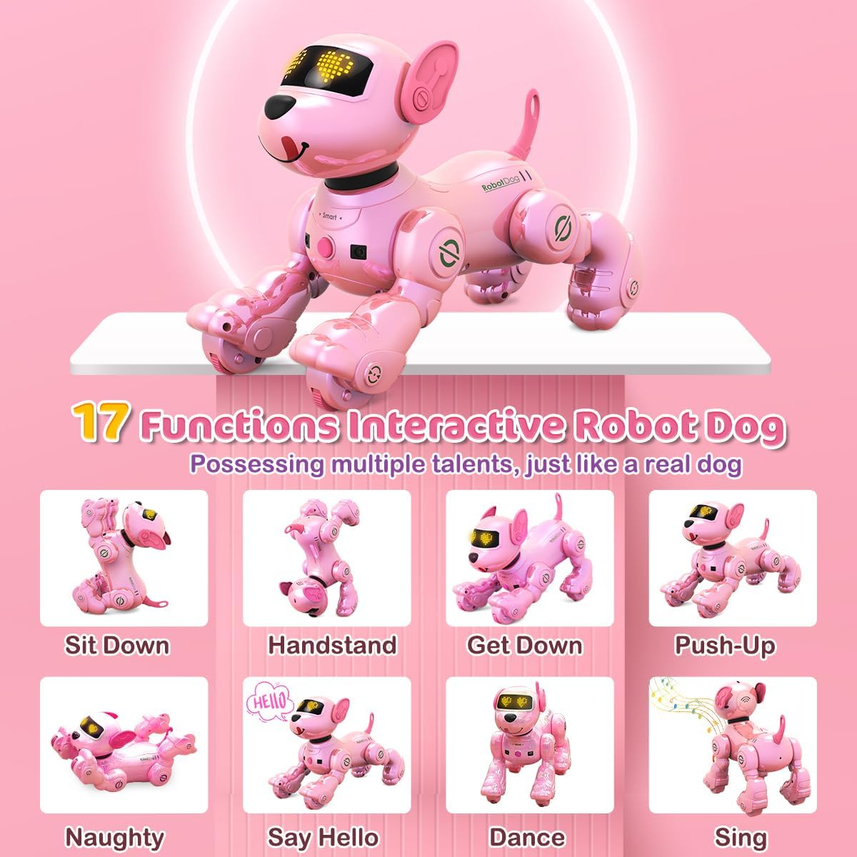 【Aspetto Rosa Metallizzato che Cattura l'attenzione】Questo nuovo cane robot utilizza una tecnologia avanzata di spruzzatura laser per creare un aspetto rosa unico e abbagliante. Rispetto ai normali giocattoli per cani robot, il suo aspetto è più raffinato e strutturato. Il corpo rosa metallizzato non solo è resistente all'usura e durevole, ma riflette anche una lucentezza unica sotto diverse luci, mostrando un bellissimo effetto visivo 【2 Batterie Ricaricabili di Grande Capacità】Per consentire ai bambini di divertirsi più a lungo, il nuovo cane robot VATOS è appositamente dotato di due batterie ricaricabili. Quando una batteria è scarica, è sufficiente sostituirla con un'altra completamente carica e il cane robot sarà immediatamente rigenerato. Questo design permette ai bambini di esplorare le varie funzioni interessanti del cane robot, consentendo ai bambini di godere di un divertimento di interazione più duraturo 【17 Funzioni Interattive Divertenti】Questo cane robot ha 17 funzioni divertenti. Se non si sceglie alcuna funzione dopo l'accensione, il cane robot eseguirà automaticamente una serie di azioni ogni 5 secondi, come sedersi, rotolare, fare flessioni, salutare ed emettere suoni di cane come “bau bau” per attirare la vostra attenzione. Quando si tocca il suo mento, il cane robot innesca casualmente azioni e suoni, proprio come un vero cane 【100 Azioni Programmabili】Questo intelligente cane robot programmabile permette ai bambini di comandare al cane robot di completare una serie di azioni vivaci e interessanti attraverso comandi personalizzati,come muoversi in avanti, indietro,sedersi, ballare e salutare,può registrare fino a 100 comandi. Stimola la creatività dei bambini in modo interattivo e li guida ad apprendere il pensiero della programmazione attraverso i giochi, rendendo la programmazione interessante e intuitiva 【Regalo Perfetto Bello e Intelligente】Vuoi dare ai tuoi bambini il divertimento di avere un animale domestico senza la responsabilità di avere un cane vero? Questo simpatico cane robot interattivo è la scelta perfetta! Basta caricarlo e godersi un divertimento senza fine. È un regalo eccellente per compleanni, vacanze o qualsiasi altra occasione speciale per bambini dai 3 anni in su, che possono godere del doppio divertimento della tecnologia e della compagnia mentre si divertono.