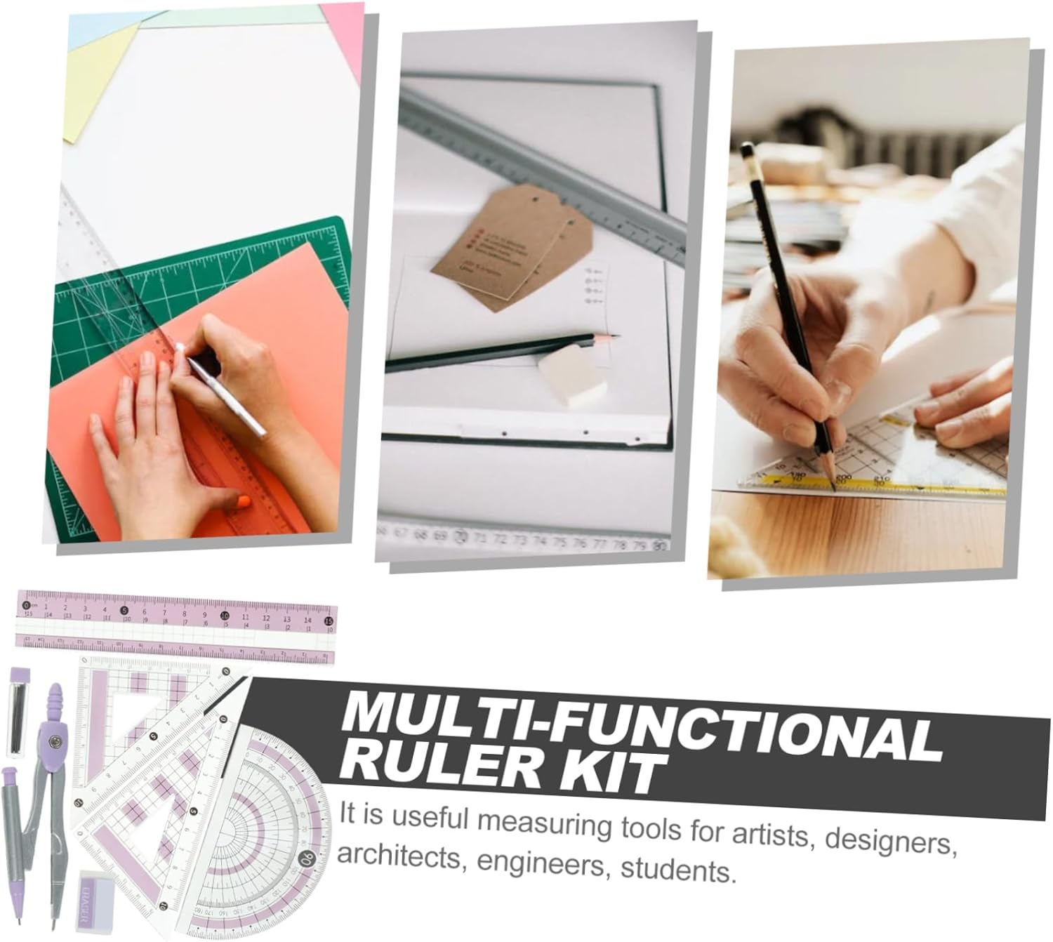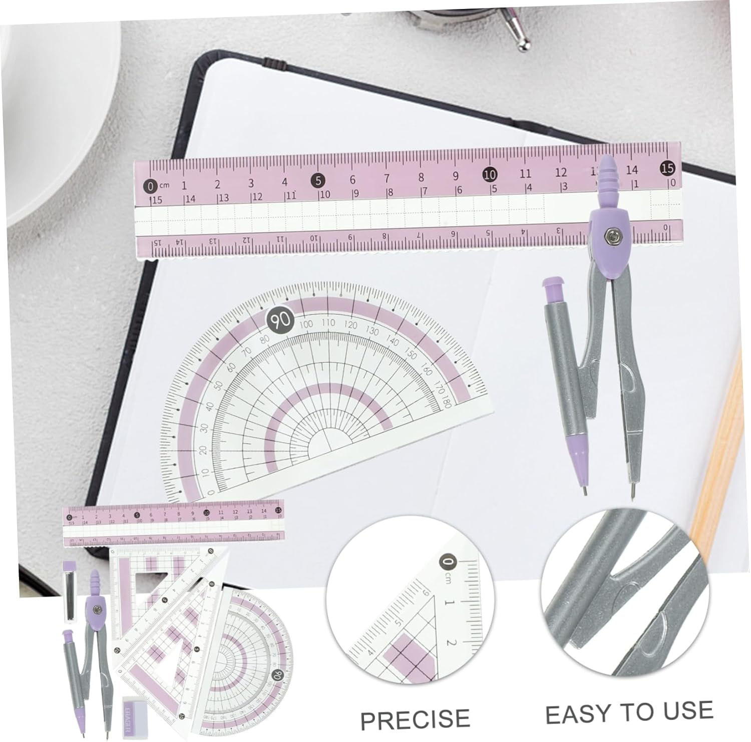 Goniometro per geometria: è uno strumento di misurazione utile per artisti, designer, architetti, ingegneri, studenti, righello triangolare da disegno professionale Compasso da disegno per ufficio: realizzato in materiale di alta qualità, può essere utilizzato a lungo, molto pratico per il lavoro e la vita, kit righello triangolare Goniometro geometrico professionale: i numeri sono chiari, facili da identificare e quindi puoi leggere rapidamente e con precisione, strumento di misurazione Goniometro per compasso da disegno: questo prodotto è portatile e leggero, puoi trasportarlo facilmente e comodamente in diversi luoghi, goniometro per geometria scolastica Righello triangolare da disegno: può essere utilizzato nel disegno, nel taglio dritto, nella progettazione grafica, nell'insegnamento, nell'ingegneria e in altri campi, kit righello multifunzionale