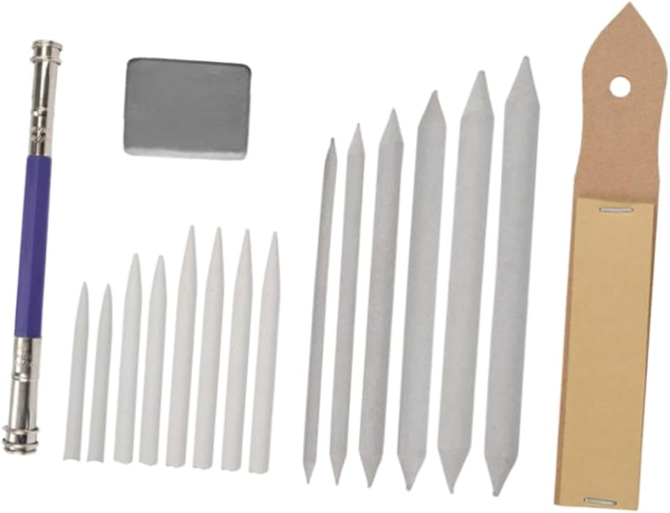 Sfumino per disegno artistico: questo set di sfumini e tortiglioni per carboncino può essere affilato con blocchi di carta vetrata usali per sfumare matite, pastelli e carboncino mantieni la punta affilandoli con un blocco abrasivo estensione per gomma Sfumatura di monconi di carta: monconi e tortiglioni con ombreggiature affusolate e, da usare per disegnare motivi e consistenze, creare un effetto nebuloso o da usare come pennello, utile per il tuo schizzo di disegno per aree sottili, disegna la consistenza e il motivo nei punti con linee finite e puoi anche aggiungere un effetto o un'ombra ai tuoi disegni, estensore per gomma Strumento schizzo: comodo da usare, estensore gomma Carta vetrata cancellabile a carboncino: il set di tortiglioni è realizzato in carta compressa di e può essere affilato con blocchi di carta vetrata, quindi pulito con un tovagliolo, estensore per gomma Estensione per gomma: fogli di carta vetrata montati su un manico, strumenti pratici per temperare matite, carboncini, pastelli e tortillon, carta vetrata cancellabile art charcoal
