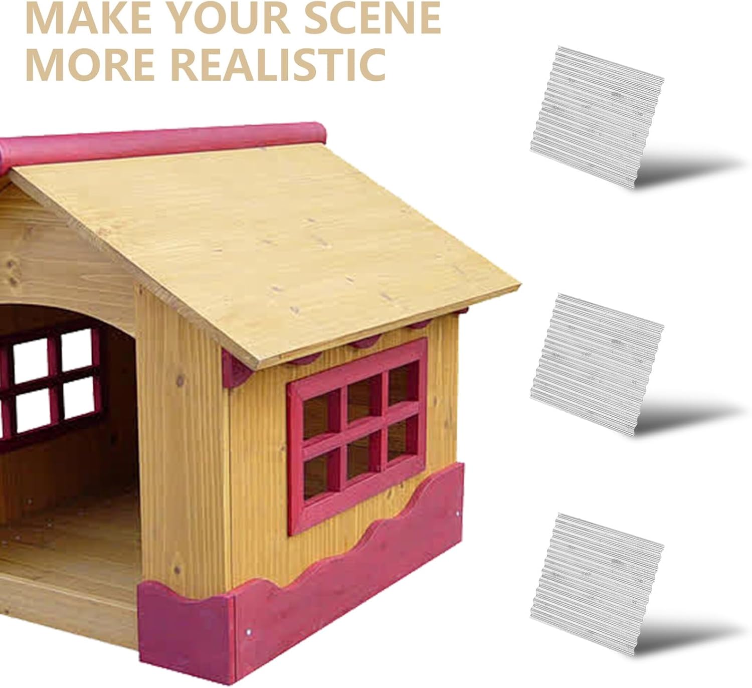Effetto tetto realistico: presenta texture in acciaio ondulato che conferiscono un aspetto realistico al tetto, aggiungendo profondità e impatto visivo ai tuoi modelli, accessori per il paesaggio, modelli di piccole Facile da usare: consente agli appassionati di modellismo di assemblare elementi decorativi in miniatura di tetti e pannelli per soffitti in metallo senza una preparazione complicata, , materiali da costruzione in miniatura Adattabilità alla scala: la scala ridotta garantisce la compatibilità con vari layout, scene di fabbrica ai progetti di case delle bambole, mini piastrelle, materiali per l'artigianato in miniatura Versatilità della scena: queste per tetti di mini case offrono una versatilità senza pari come accessori per il paesaggio e materiali artigianali in miniatura, per tetti di mini case, disposizione degli accessori per Ampio utilizzo: utilizzato per esposizioni e collezioni personali, arricchendo l'apprezzamento culturale e lo stile dell'arredamento, modello di , modello di costruzione ondulato