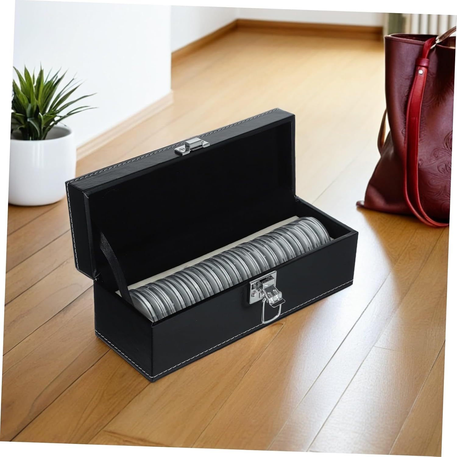 Protezione sicura ed ermetica: ogni custodia per monete si adatta perfettamente all'organizzatore per monete, fornendo una protezione ermetica per preservare le condizioni delle tue monete e medaglie nel tempo, organizzatore di denaro per contanti, deposito di denaro per contanti Presentazione elegante per monete: la per monete migliora la presentazione della tua collezione, consentendoti di esporre le tue monete e lastre in modo elegante e organizzato, porta quarti, porta gettoni Versatile per collezionisti: il per monete può contenere monete di varie dimensioni, rendendolo adatto per riporre quarti, gettoni, medaglie e altro ancora, per capsule di monete, per monete Design : la scatola porta monete compatta è progettata per massimizzare l'efficienza di archiviazione, consentendo di conservare fino a 20 capsule di monete senza occupare troppo spazio, custodia rotonda per monete, forniture numismatiche E: realizzato con materiali robusti, questo astuccio porta monete è progettato per resistere all'uso quotidiano mantenendo le tue monete e medaglie in perfette condizioni, astuccio porta lastre, capsule porta medaglie