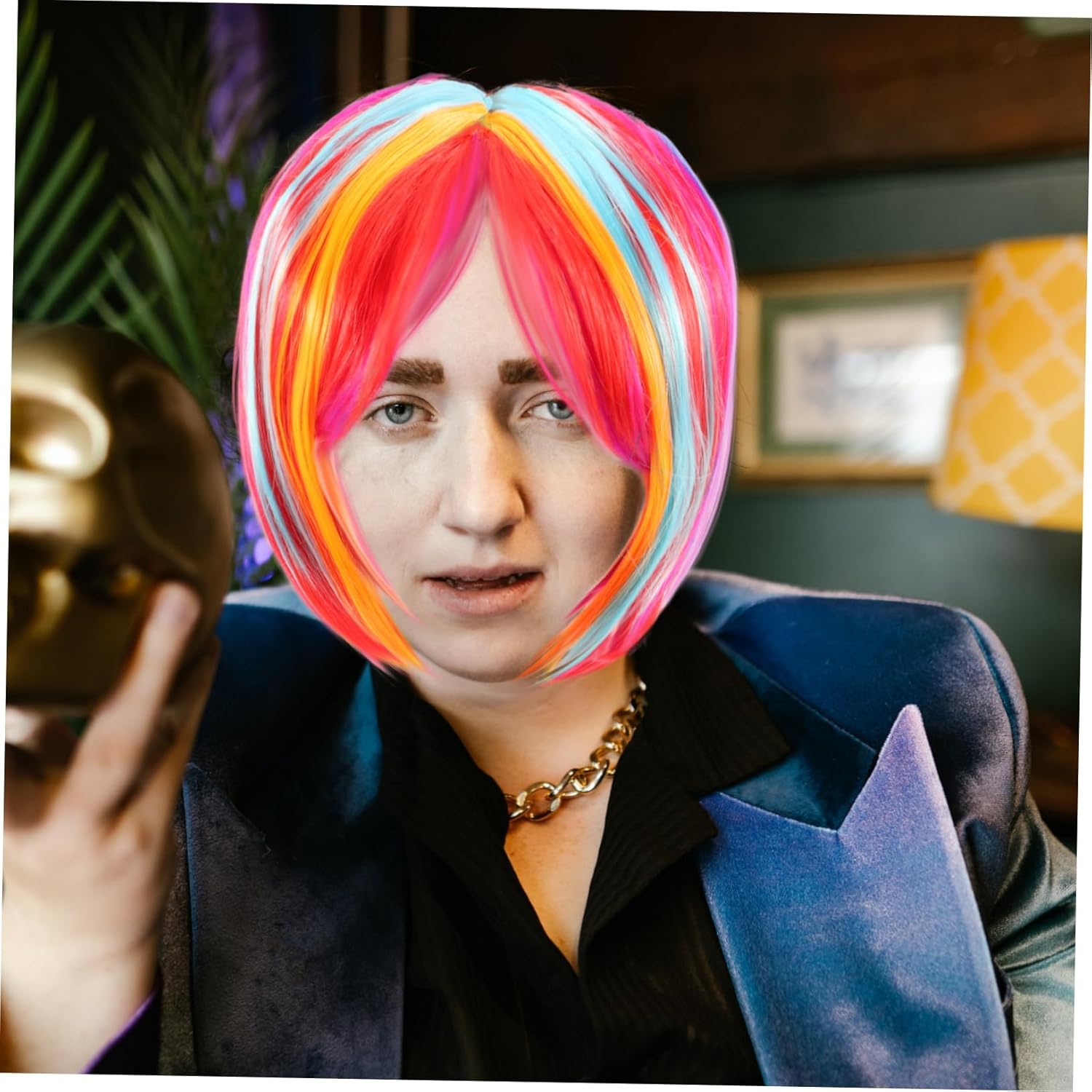 finti per donne: i materiali in fibra e la consistenza rendono questa parrucca per donne delicata e comoda da indossare, sembra molto simile ai umani, parrucca bob sintetica Parrucca da discoteca: questa parrucca è leggera e adatta all'uso quotidiano, per balli in maschera, bar, feste, balli di fine anno, matrimoni, parrucche da costume per donne Parrucca cosplay: puoi facilmente rimodellare la parrucca per il look che preferisci, rendendola un ottimo accessorio per le occasioni speciali, parrucche bob Parrucca colorata: questa parrucca bob è un'ottima scelta per la tua ragazza o amiche, soprattutto per coloro che sono amanti del cosplay, parrucca colorata Parrucche da mascheramento: la parrucca decorativa è per l'uso quotidiano, feste, concerti, feste a tema, matrimoni, appuntamenti, cosplay o semplicemente per divertimento, parrucca divertente