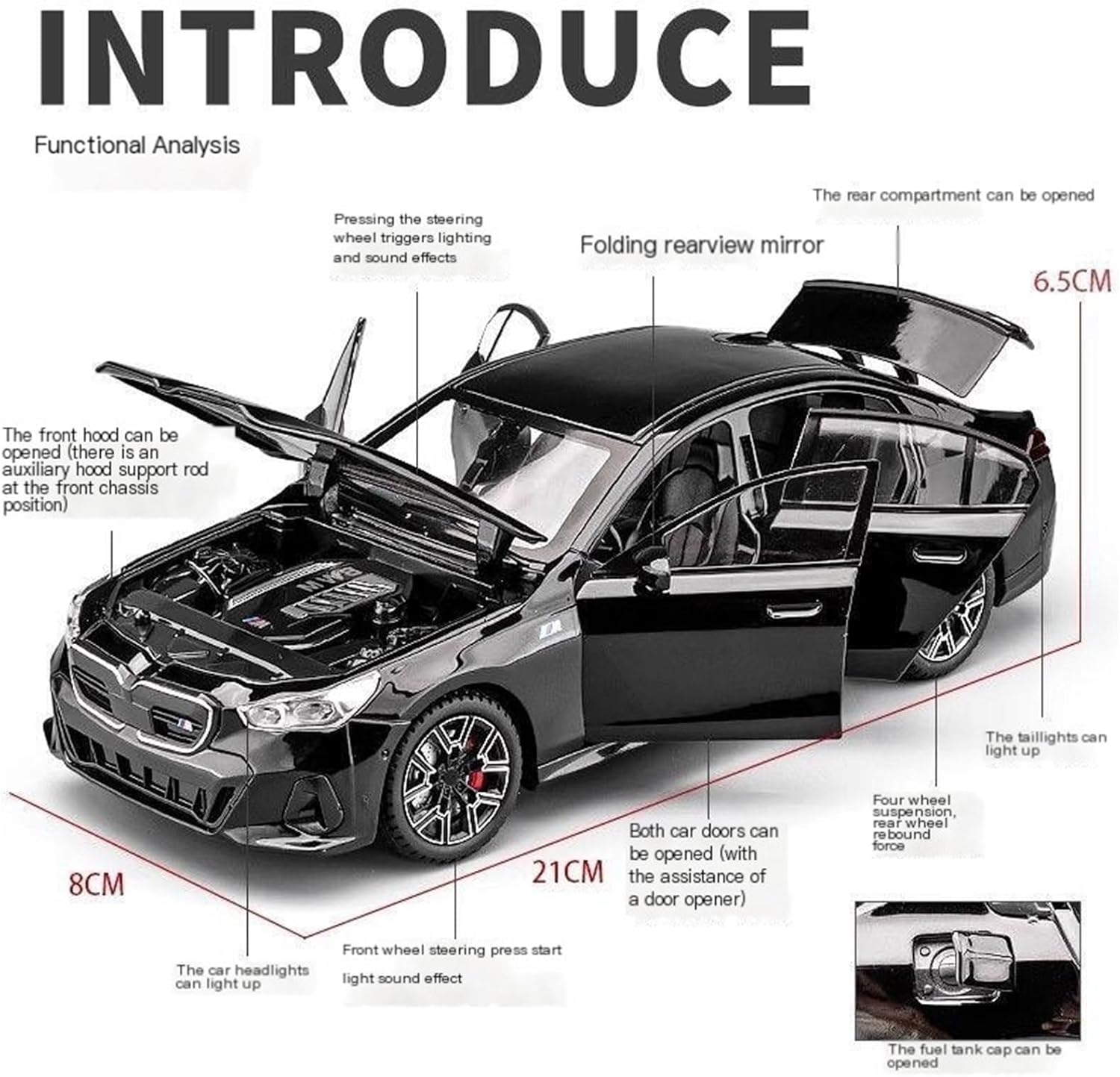 Questo modello in scala 1:24 è meticolosamente realizzato in lega e ABS, con linee eleganti e riproduzioni meticolosamente dettagliate. Come modello in scala, cattura perfettamente le caratteristiche stilistiche delle auto sportive e dei SUV della serie, offrendo sia un fascino visivo che un valore collezionabile, rendendolo un must for gli appassionati di auto. Le portiere si aprono e gli interni sono meticolosamente progettati, con sedili, volante e cruscotto riprodotti fedelmente. Come modello finito, non è solo adatto all'esposizione statica, ma consente anche ai collezionisti di ammirare la disposizione degli interni e la fattura del veicolo reale attraverso dettagli dettagliati. Il modello è dotato di un sistema di luci e suoni integrato, che illumina i fari anteriori e posteriori simulando al contempo il suono del motore for un'esperienza più immersiva. La funzione pull-back consente al modellino di scivolare senza sforzo oltre lo schermo, aggiungendo un tocco di interattività e di esperienza visiva. La verniciatura di alta qualità crea una finitura brillante e uniforme, destinata a durare nel tempo. La texture metallica del modello in lega è straordinariamente solida, rendendolo un elemento decorativo di grande impatto, che si distingue su scrivanie, vetrine o uffici. Questo modello di auto da collezione è sia visivamente accattivante che collezionabile, perfetto come regalo o da esporre. La sua lavorazione di alta precisione e il restauro dettagliato lo rendono un tesoro ideale for appassionati e collezionisti di auto.