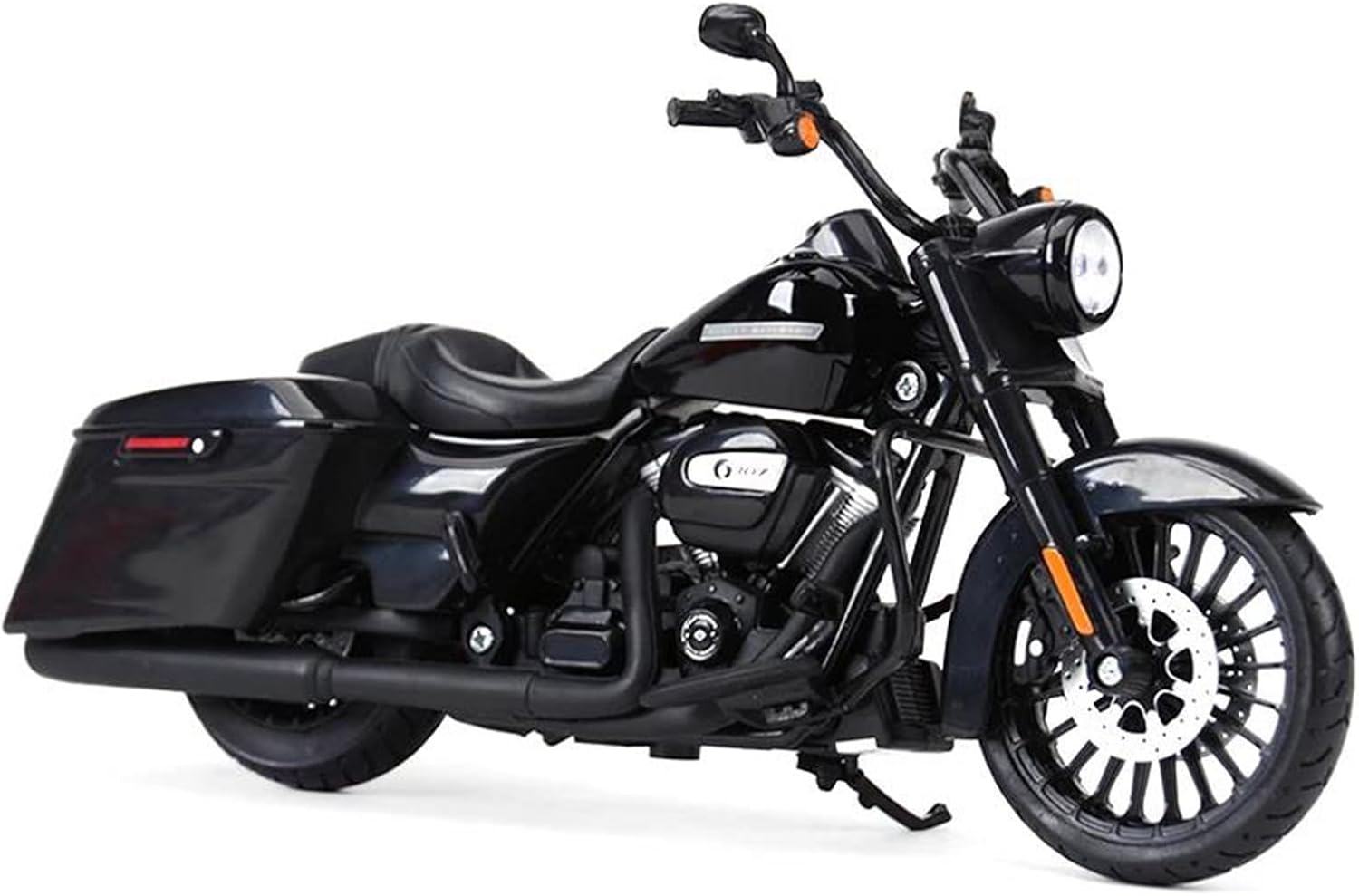 Modellini di motociclette in scala 1:12 per per D&avidson 2017 Road King Speclal Modello di motocicletta, una motocicletta classica ed elegante, riprodotta con eccezionale accuratezza senza trascurare alcun dettaglio, dal motore distintivo, alla sella e alle curve eleganti, una replica assolutamente fedele. La ruota anteriore e il manubrio possono oscillare da un lato all'altro, cavalletto mobile, ruote libere, sospensioni posteriori a molla Realizzato in resistente lega di zinco, è resistente alle cadute e all'usura, garantendo la durevolezza del modello e la sua lunga conservazione. La finitura della vernice è uniformemente liscia, con colori vivaci e duraturi che resistono allo sbiadimento e alle scheggiature, garantendo un aspetto costantemente brillante.