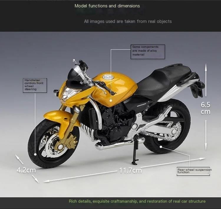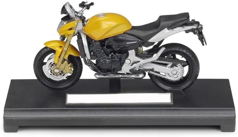 Modellini di motociclette giocattolo in scala 1:18, parti squisite progettate secondo le proporzioni originali dell'auto, cruscotto, pedali del freno e dell'acceleratore sono progettati per essere realistici e precisi. la modalità di simulazione della motocicletta è piena di personalità, così bella. Ottima per la collezione e l'arredamento dell'ufficio domestico. Modello di motocicletta per Hornet La finitura liscia e senza sbavature e la vernice lucida e uniforme dimostrano una maestria artigianale eccezionale. Questo modello incarna lo stile di una motocicletta, soddisfacendo l'amore degli appassionati per i modelli nostalgici.