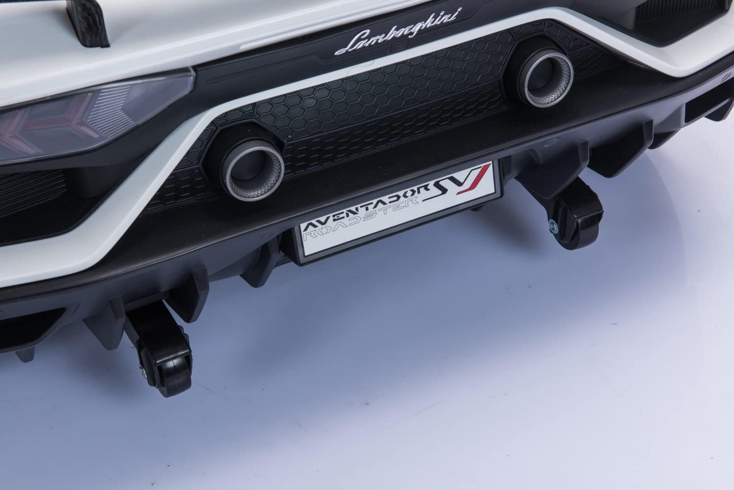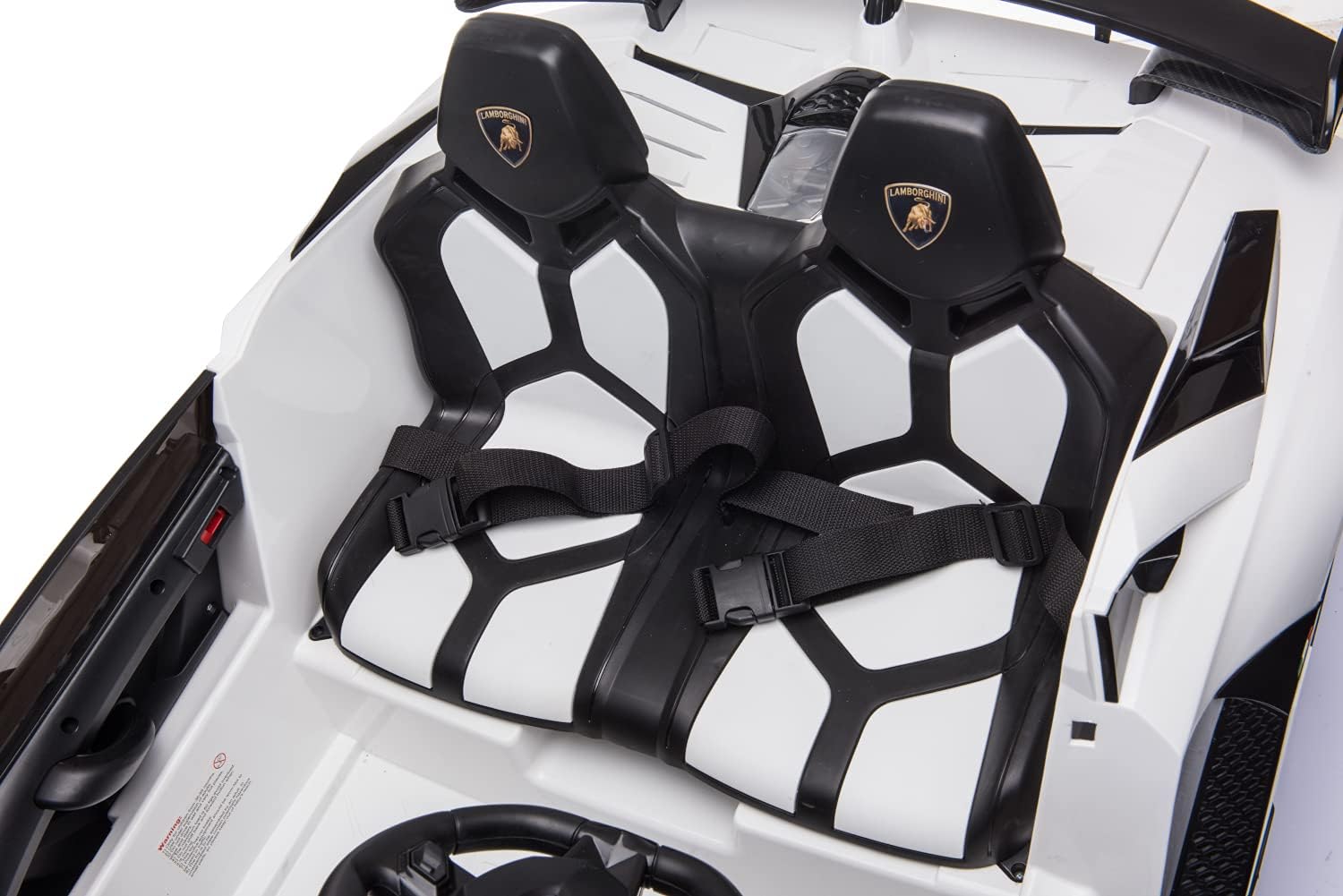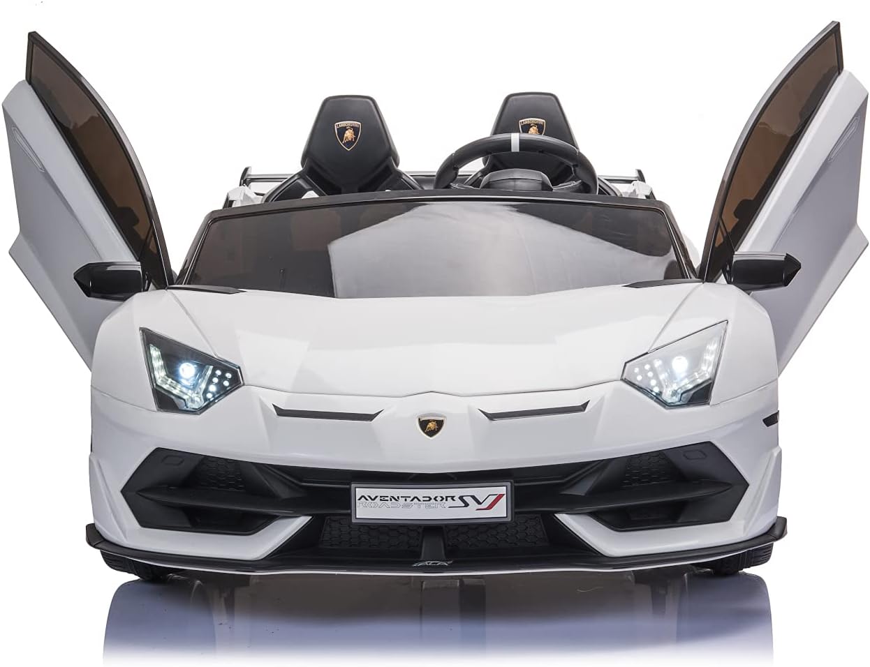 PNEUMATICI EVA | SEDILE IN PELLE | LICENZA DI LAMBORGHINI | 2 POSTI Porte a battente con ammortizzatore, fari anteriori e posteriori, telecomando da 2,4 GHz, 2 motori Con porte MP3, USB e scheda SD, volante multifunzione con effetti musicali, 3 livelli di velocità Porte apribili | Fino a 6 km/h veloce | Cintura di sicurezza | Soft Start | Ammortizzatore 2 motori elettrici da 35 W, batteria 12 V7A, portata: circa 40 kg. Dimensioni (lunghezza x larghezza x altezza): 135 x 80 x 53,5 cm