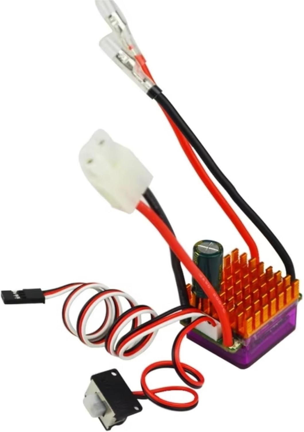 Materiale: il regolatore di velocità elettronico utilizza materiali speciali per la dissipazione del calore, per una protezione dagli schizzi, robusto e affidabile, una buona efficienza di dissipazione del calore e un lungo servizio; Caratteristiche: protezione da bassa tensione della batteria per interruzione, protezione da surriscaldamento, protezione dalla perdita del segnale dell'acceleratore, impermeabile, lunga durata; Installazione: Anche l'installazione è molto comoda, basta collegarsi all'alimentazione del ricevitore, con istruzioni chiare, design intuitivo, l'installazione è semplice; Servizio post-vendita: in caso di problemi durante l'utilizzo, il nostro team tecnico professionale risponderà rapidamente per garantire la stabilità del regolatore di velocità; Progettato in modo ingegnoso: un algoritmo di programmazione unico, specificamente progettato per le macchinine telecomandate, garantisce prestazioni di accelerazione e frenata eccezionali e linearità, garantendo praticità ed efficienza; Che tu stia gareggiando o semplicemente giocando, è facilmente adattabile per soddisfare le tue diverse esigenze di controllo della velocità;