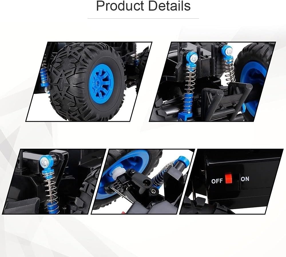 Nuovissimo monster truck RC in scala 1/18. Realizzato con materiali di alta qualità, ecologici e atossici, motore ad alta potenza e ad alta velocità. Sistema antiurto delle sospensioni, protegge meglio il camion. Per realizzare gli pneumatici viene utilizzata una gomma estremamente resistente all'abrasione.