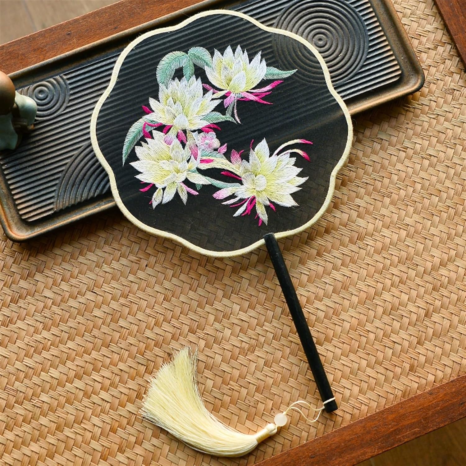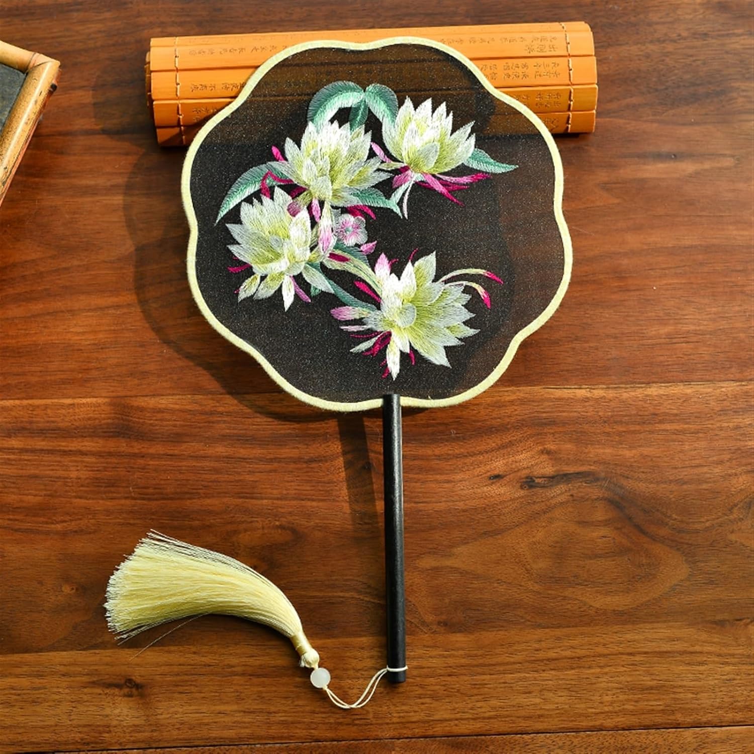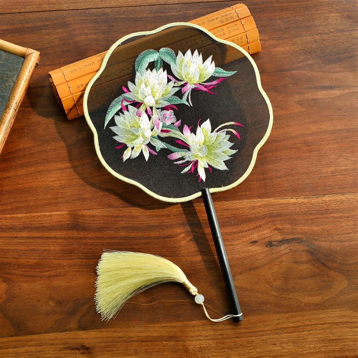 Dimensioni complessive (circa): lunghezza: 14,2" (36,0 cm), larghezza totale: 8,3" (21,0 cm). Ampia superficie del ventilatore pieghevole, ideale for mantenere il fresco Materiale: il manico del ventilatore è in legno, robusto e durevole da usare a lungo. Il ventilatore è realizzato in tessuto di seta imitata, con verniciatura delicata e resistente Caratteristica: la combinazione perfetta tra la superficie dei ventagli di seta traslucida e la bellissima stampa floreale. Utilizzando il polso con il minimo sforzo si possono evitare i flash o il calore nelle calde giornate estive Grazie for essere venuto nel nostro negozio. Se avete domande, inviatemi un'e-mail e vi risponderò immediatamente.