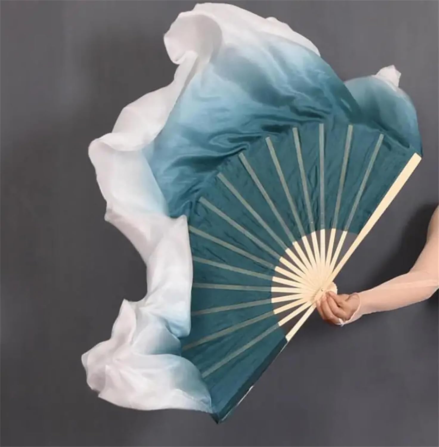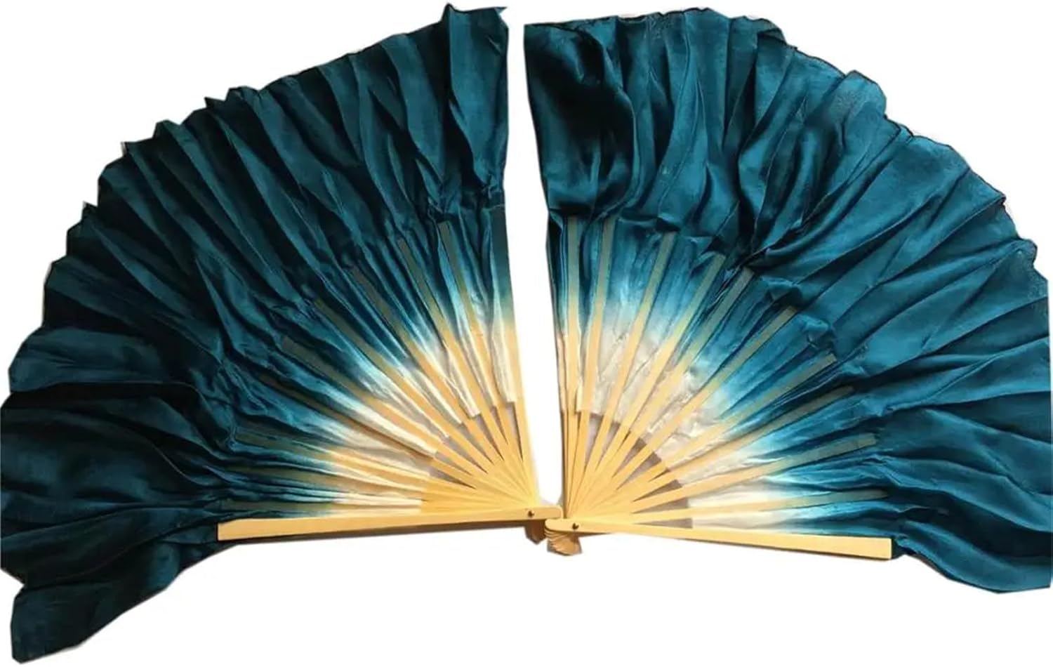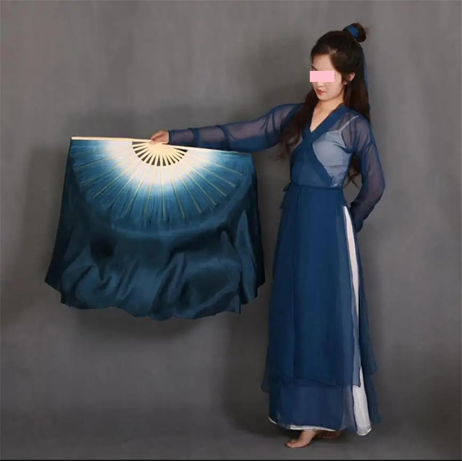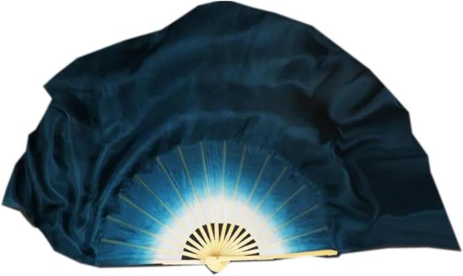 Ventaglio da danza del ventre, ventagli da danza del ventre, veli di seta, ventaglio lungo for danza del ventre, velo di seta sfumato blu scuro, ventaglio da danza tradizionale cinese tinto a mano(36c