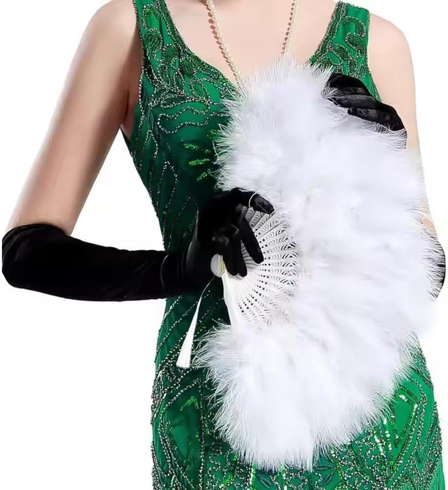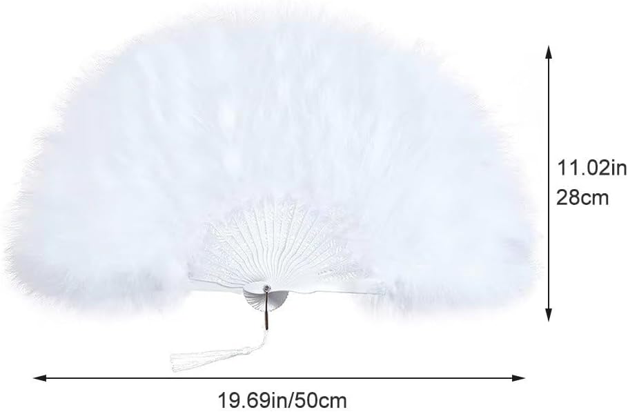 Ventaglio di piume: confezione include un ventaglio di piume tenuto in mano in stile vintage anni '20 con nappe. Questo accessorio per costume ti rende più retrò. Regalo ideale: questo set di ventagli di piume artificiali degli anni '20 e fascia vintage è il regalo perfetto per famiglia, , madre, nonna, fidanzata e persona amata. Ampiamente usato: il nostro ventaglio di piume retrò portatile è perfetto per le feste degli anni '20, feste a tema Gatsby, tea party, balli in maschera o qualsiasi altro evento speciale. Nota: a causa della fabbricazione manuale, piuma del ventaglio cadrà leggermente durante il utilizzo, il che è normale. Dopo una leggera scossa, il problema può essere risolto. Misura adatta: l'altezza del ventaglio di piume in stile retrò è di circa 28 cm/11,02 pollici, larghezza del ventaglio di piume quando è aperto è di circa 50 cm/19,69 pollici.