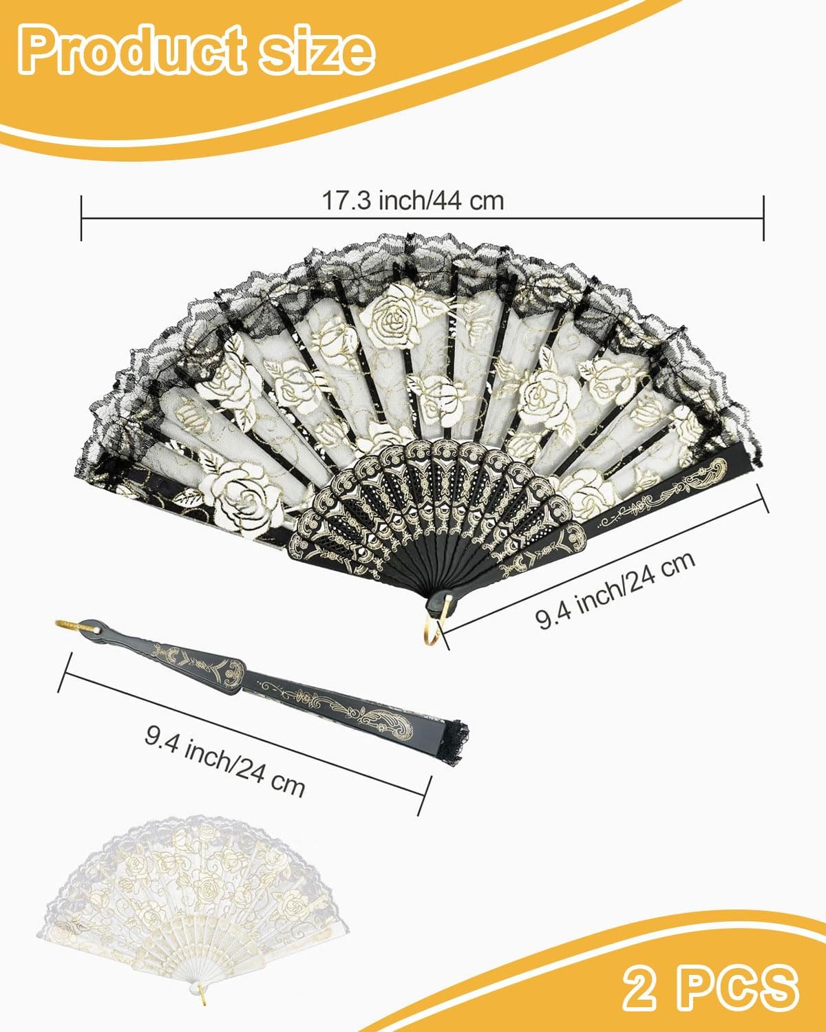 Informazioni sul prodotto: Contiene 2 ventagli in pizzo, stampati con splendide rose stampate a caldo, piccoli e leggeri, facili da trasportare. Materiale del prodotto: le nostre piume a ventaglio sono realizzate in plastica e pizzo, realizzate professionalmente, morbide, inodori e sicure da usare. Design retrò: il nostro ventaglio da donna adotta un design in stile gotico retrò, con stampa in oro e abbinato a pizzo nero, che mette in risalto il temperamento, maturo ed elegante, e trasuda un fascino diverso. Occasioni adatte: questo ventaglio in pizzo in stile anni '20 è perfetto per feste retrò, carnevale di Halloween, Natale, balli vari, feste gotiche, eventi a tema Lolita ed eventi in stile anni '20. Può essere abbinato a un cheongsam. È anche un ottimo accessorio fotografico e un regalo. Servizio clienti: se riscontri problemi con questo ventaglio, non esitare a contattarci. Risolveremo il tuo problema entro 24 ore.