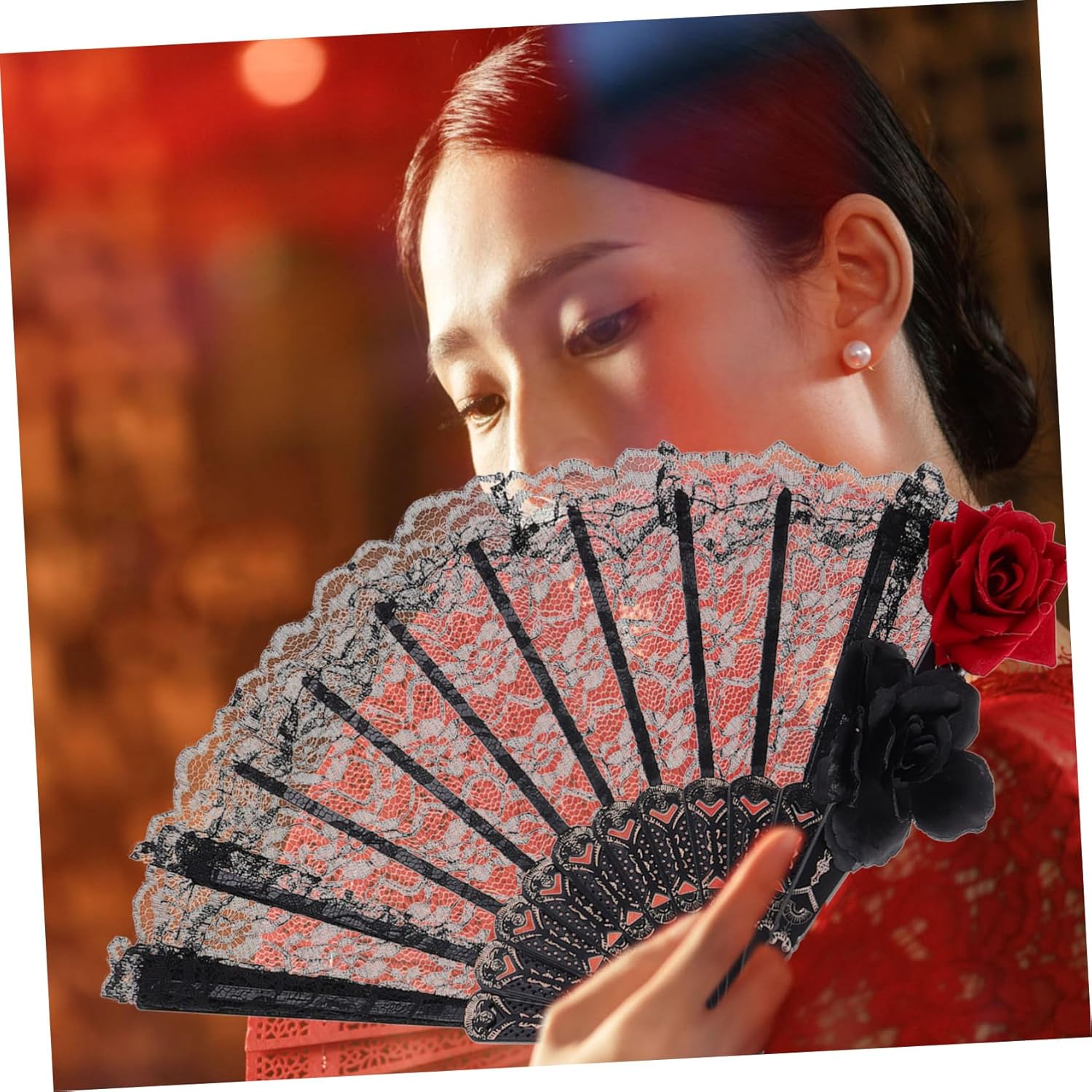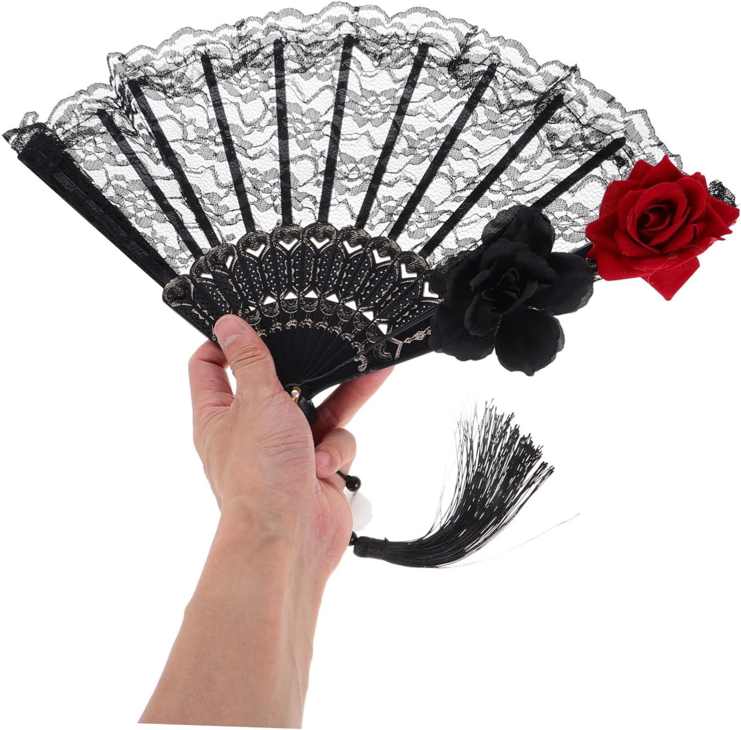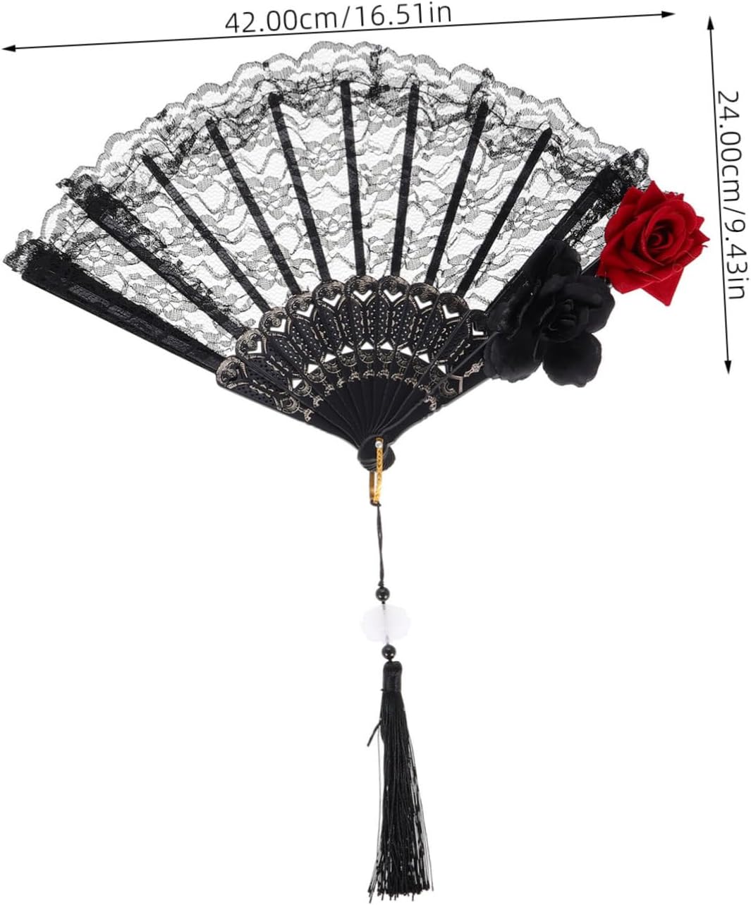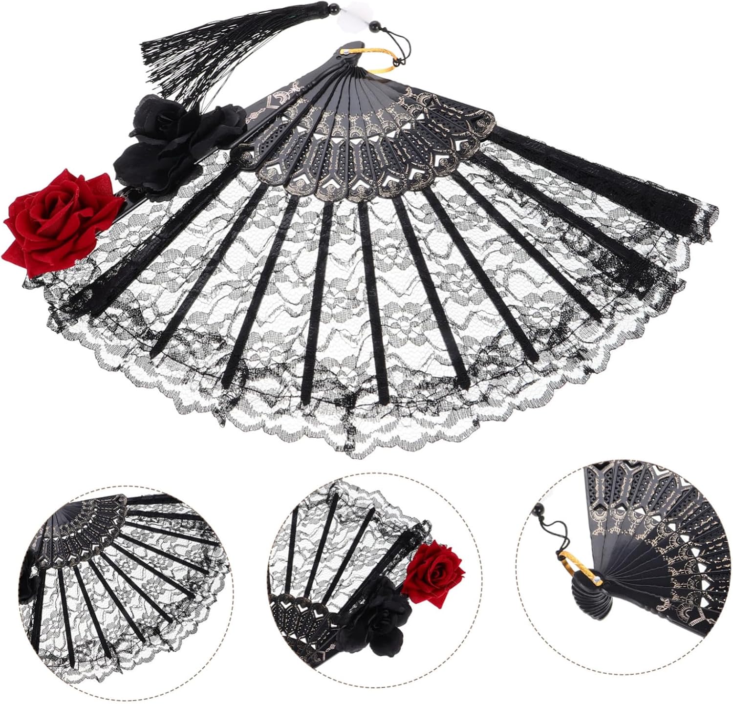 gotica: questo ventaglio incarna l' gotica, rendendolo un ottimo accessorio per coloro che apprezzano la moda oscura e sofisticata. Intricata lavorazione del pizzo: il ventaglio è realizzato con intricato pizzo, offrendo una miscela di romanticismo e mistero che valorizza qualsiasi outfit. Portatile e conveniente: la sua pieghevole lo rende facile da trasportare e riporre, assicurandoti di portarlo con te ovunque tu vada. Ideale per molteplici occasioni: adatto per eventi vittoriani, feste di Halloween e incontri di moda lolita, questo ventaglio è versatile ed elegante. Metti in risalto la tua personalità: con il suo design gotico unico, questo ventaglio ti permette di esprimere la tua personalità e distinguerti tra la .