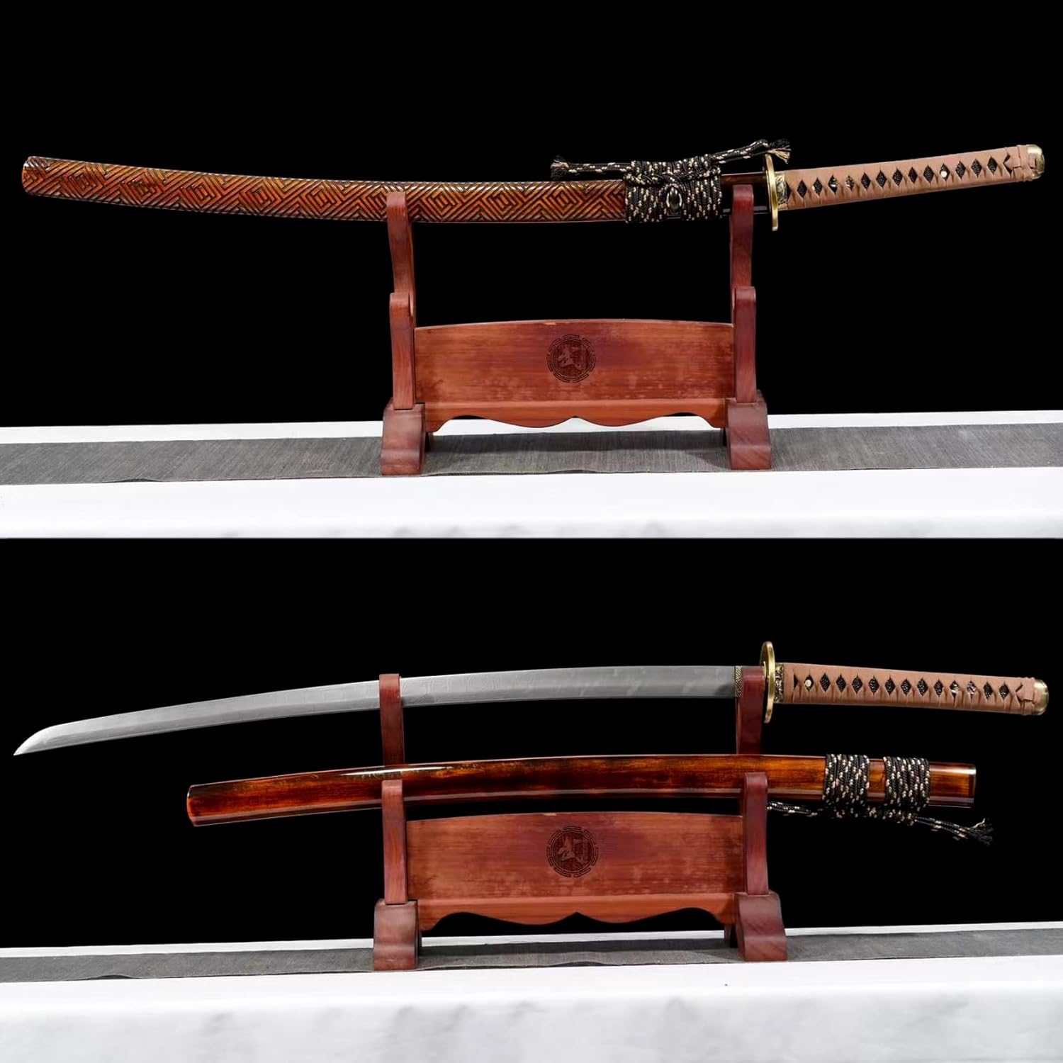❤️ 【Materiale selezionato】: le nostre lame katana sono forgiate in acciaio di alta qualità, che ha elevata durezza e buona tenacità. Il paramano è realizzato in rame puro con intagli pregiati. Il fodero è realizzato in legno massello e l'esterno è dipinto e inciso con un motivo unico, accattivante e unico. ❤️ 【Proporzioni perfette】: La katana ha una lunghezza totale di 103 cm, una lunghezza della lama di 71 cm, una lunghezza del manico di 26 cm, una larghezza della lama di 3,2 cm e un peso di 1,46 kg. Il design complessivo ha proporzioni coordinate. Sia che pratichi o pratichi Kendo, puoi sentirlo ogni volta, è equilibrato e confortevole. ❤️ 【Artigianato tradizionale】: ogni katana è realizzata a mano da abili artigiani utilizzando metodi tradizionali. La lama della spada è stata piegata e forgiata molte volte per formare un motivo ritorto unico. La lama ha un'elevata durezza e una tenacità sufficiente (può ancora rimbalzare senza deformarsi dopo una piegatura di 90 gradi). ❤️ 【Ampia applicazione】: questa katana non è adatta solo per giochi di ruolo e allenamenti di kendo, ma può anche essere utilizzata come punto culminante della decorazione domestica per creare un'atmosfera artistica o come accessorio accattivante nelle feste a tema. Allo stesso tempo, questo è anche un regalo perfetto per gli amanti della spada. ❤️ 【Eredita lo spirito del samurai】: questa spada da samurai non è solo uno strumento di allenamento pratico, ma anche un'opera d'arte dal profondo significato storico e culturale, che aiuta il proprietario a comprendere e sperimentare profondamente l'antico spirito del samurai.