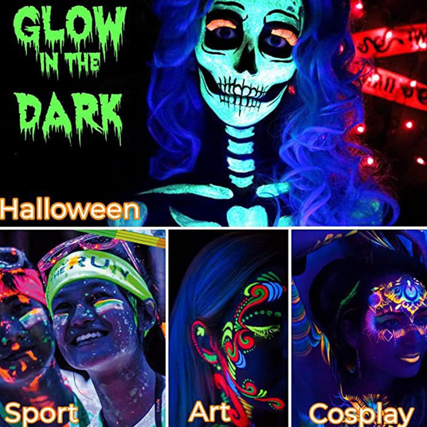 VARI COLORI TRA CUI SCEGLIERE: Con 6 penne per truccabimbi in 6 colori vivaci, questo set per truccabimbi al neon è adatto per truccabimbi e body painting. Puoi divertirti a creare fantastici disegni sul tuo viso e corpo e divertirti con la tua famiglia, i tuoi amici o i tuoi vicini. Materiale affidabile: il guscio è realizzato in materiale PP di alta qualità. Questa vernice per il viso al neon non si deforma o si rompe facilmente, garantendo un uso e una durata duraturi. Inoltre, è delicato sulla pelle e ha un aspetto delicato che ti fa risaltare. Blacklight Ready: si illumina al buio con questa vernice per il viso al neon che mostra colori vivaci e luminosi sotto la luce UV. Ti distinguerai dalla massa e stupirai tutti con il tuo look mozzafiato. Trucco facile da rimuovere: ruota la vernice per il viso al neon e applicala sulla pelle con una presa comoda. La vernice per il viso può essere facilmente rimossa con qualsiasi struccante. Puoi anche applicare la vernice per il viso in pochi secondi. Ampie applicazioni: questa vernice per il viso al neon è disponibile in sei colori vivaci che faranno risaltare la tua pelle e brilleranno al buio. Puoi combinarli per creare il tuo look unico per qualsiasi danza in maschera, festival di Halloween, evento cosplay, carnevale o Natale