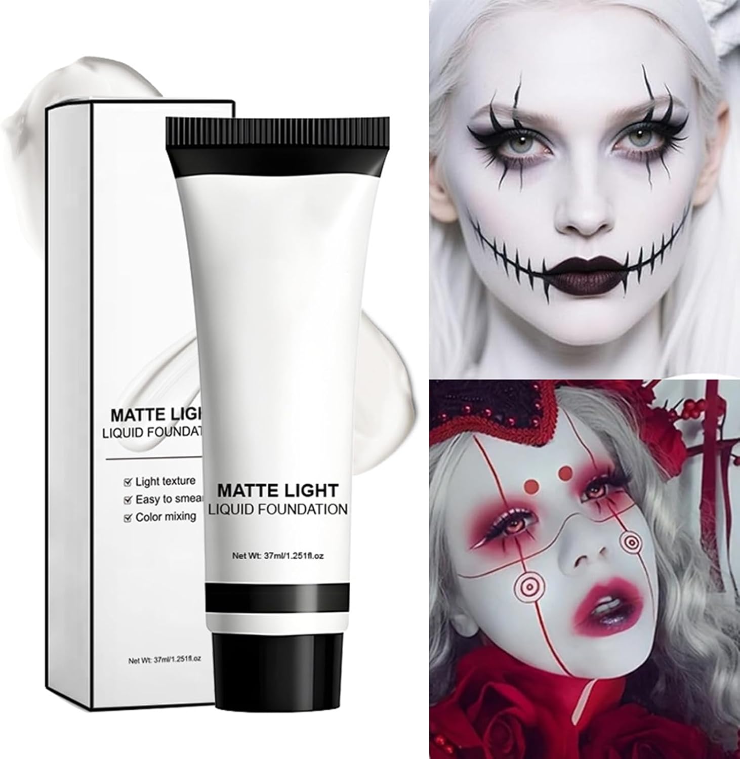 Applicazione: vernice viso bianca con texture setosa che si adatta perfettamente alla pelle con eccellente duttilità per una facile scorrevolezza e una sensazione confortevole durante l'uso Formula rispettosa: questo trucco viso presenta una formula e delicata, adatto a tutti i tipi di pelle anche sensibile, garantendo un'applicazione comoda e senza irritazioni per una finitura perfetta Aderenza affidabile: questa vernice per il viso offre un fissaggio ottimale e una vestibilità per un uso artistico, formando una pellicola stabile quando si asciuga, che garantisce una copertura uniforme senza sbavature o scheggiature durante l'uso Prestazioni meteorologiche: questa vernice bianca per il viso mantiene il suo effetto in qualsiasi condizione atmosferica, con lunga durata resistente al sudore e all'attrito, per un uso continuo durante le attività fisiche. Prestazioni flessibili: Si distingue per eventi festivi, produzioni fotografiche e spettacoli panoramici. Consente di esplorare tecniche artistiche mantenendo comfort e qualità di applicazione costante in ogni utilizzo