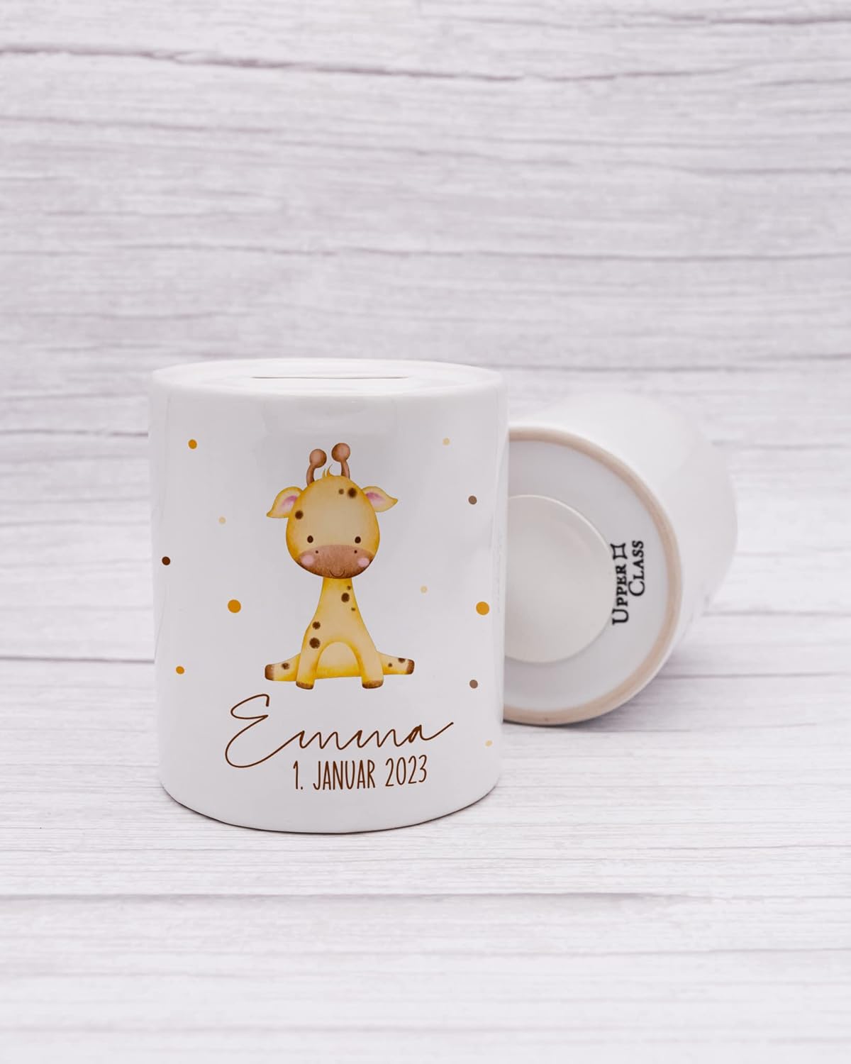 DESIGN: Con i simpatici motivi degli animali per bambini, i salvadanai in ceramica sono il regalo perfetto. Che si tratti di ragazzi o ragazze, qui ognuno troverà l'animale giusto. Risparmiare non è mai stato così dolce e facile! OCCASIONE: I nostri salvadanai sono perfetti come regalo per nascita, comunione o compleanno, anche per un regalo originale in denaro PERSONALIZZAZIONE: Con l'impronta del nome e della data desiderati, il salvadanaio diventa un regalo individuale QUALITÀ: Il salvadanaio in ceramica stampato con amore promette una brillantezza dei colori di lunga durata DIMENSIONI: Dimensioni ca. 95 mm di altezza, 80 mm di diametro DETTAGLI: La parte superiore del salvadanaio ha una fessura per inserire il denaro e la parte inferiore con una chiusura per rimuovere il denaro se necessario CONFEZIONE REGALO: La confezione regalo abbinata può essere ordinata direttamente SPEDIZIONE: Spedizione ecologica. Spediamo senza pluriball o polistirolo