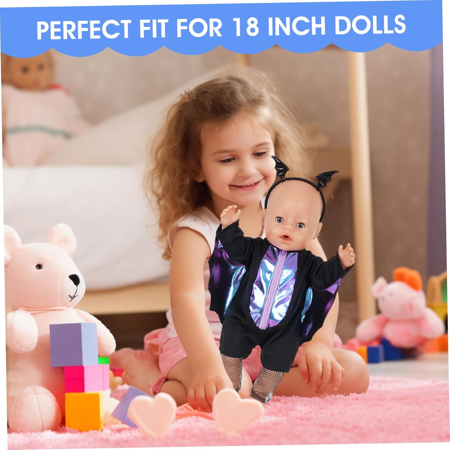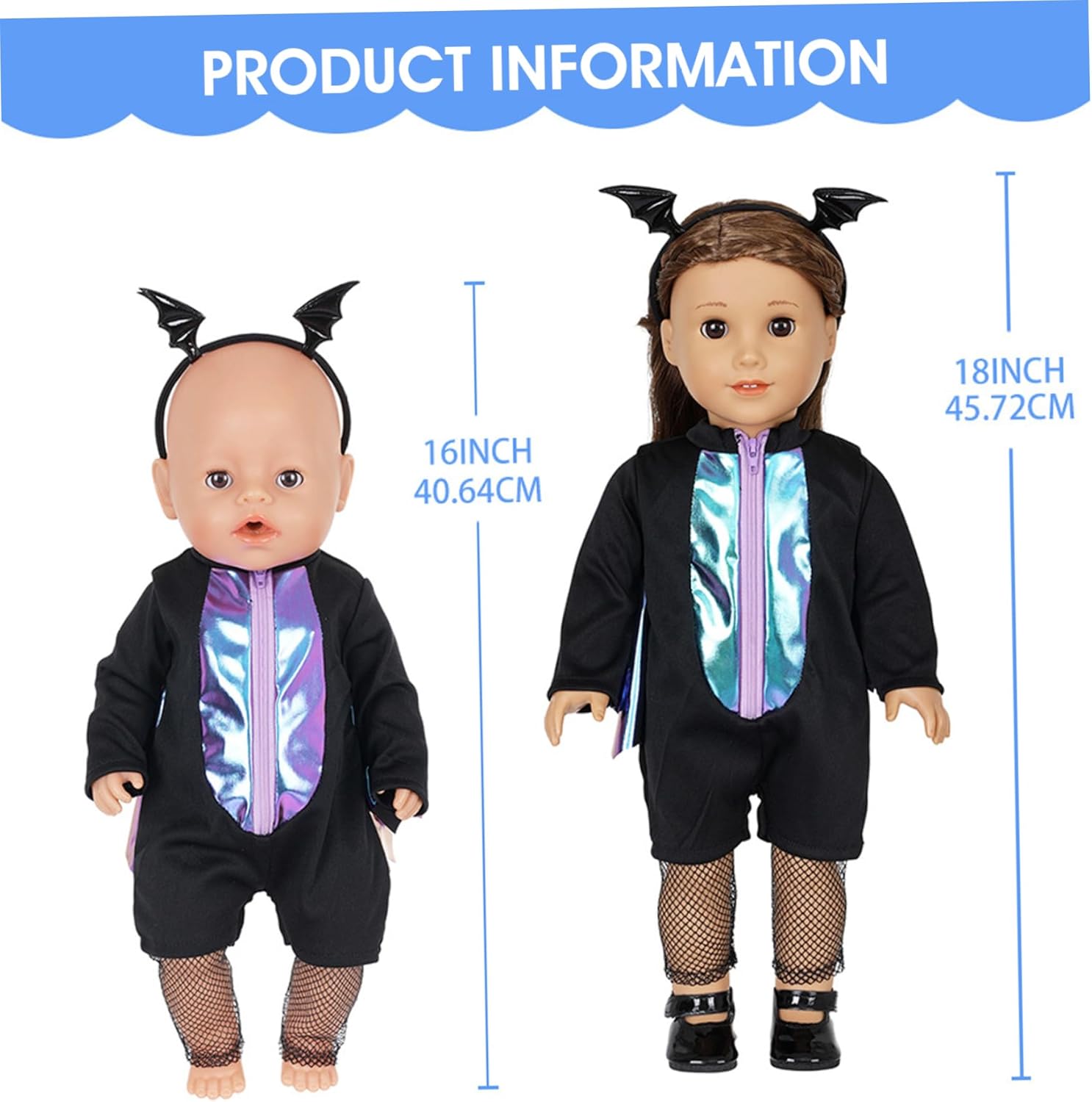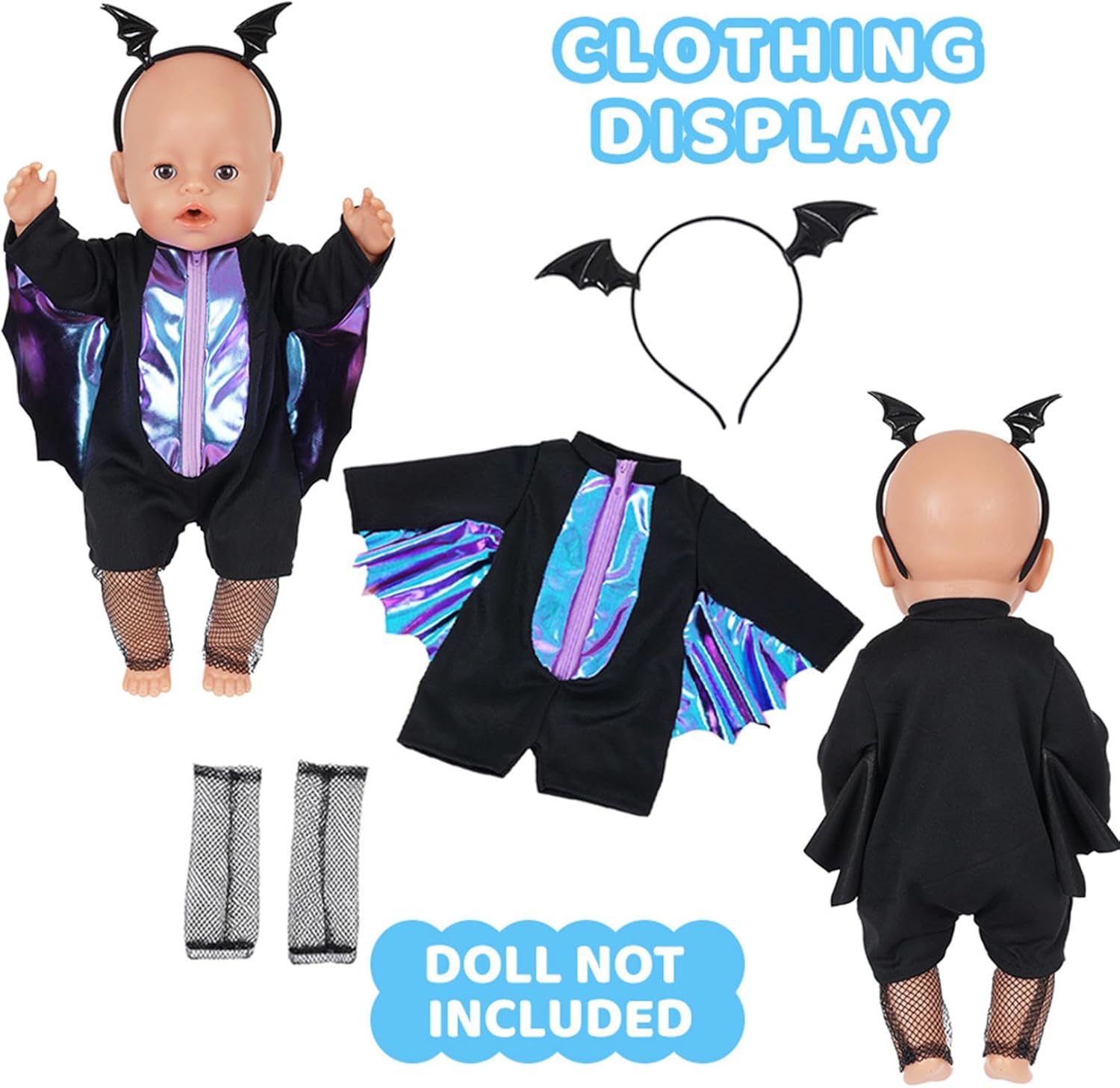Regali ideali per le ragazze: perfettamente confezionato e a tema, questo set carino e premuroso è un meraviglioso regalo di compleanno o di festa per i giovani appassionati di bambole, ispirando la creatività ad ogni utilizzo. Design festoso di Halloween: caratterizzato da una tuta elegante, una fascia coordinata e calze a rete uniche, questo set crea un affascinante costume di Halloween che aggiunge divertimento festoso e un tocco creativo alla collezione di bambole di tuo figlio. Materiali di alta qualità: realizzati con tessuti morbidi e affidabili, questi vestiti per bambole resistono a vestizioni e svestizioni frequenti, offrendo un uso duraturo pur mantenendo i colori vivaci e i dettagli intricati. Vestibilità perfetta per bambole da 18 pollici: progettati specificamente per adattarsi a tutte le bambole standard da 18 pollici, compresi i popolari tipi di bambole americane, questi vestiti e accessori garantiscono una vestibilità aderente e confortevole, rendendo il gioco con le bambole più piacevole e realistico. Set completo di accessori: il pacchetto include più pezzi: una tuta, una fascia per capelli e calze, fornendo un look di Halloween completo e pronto da indossare che incoraggia il gioco fantasioso e la varietà dei costumi.