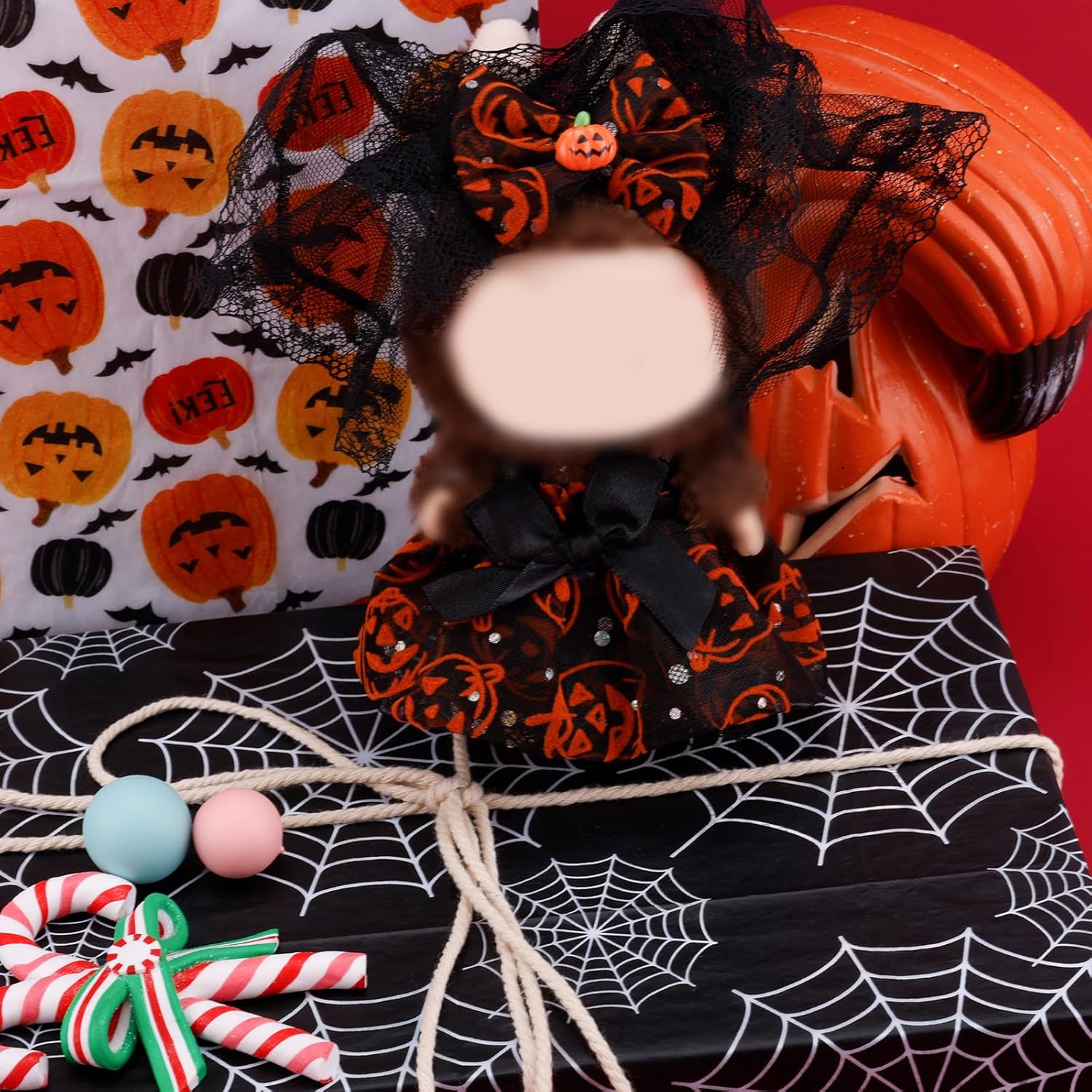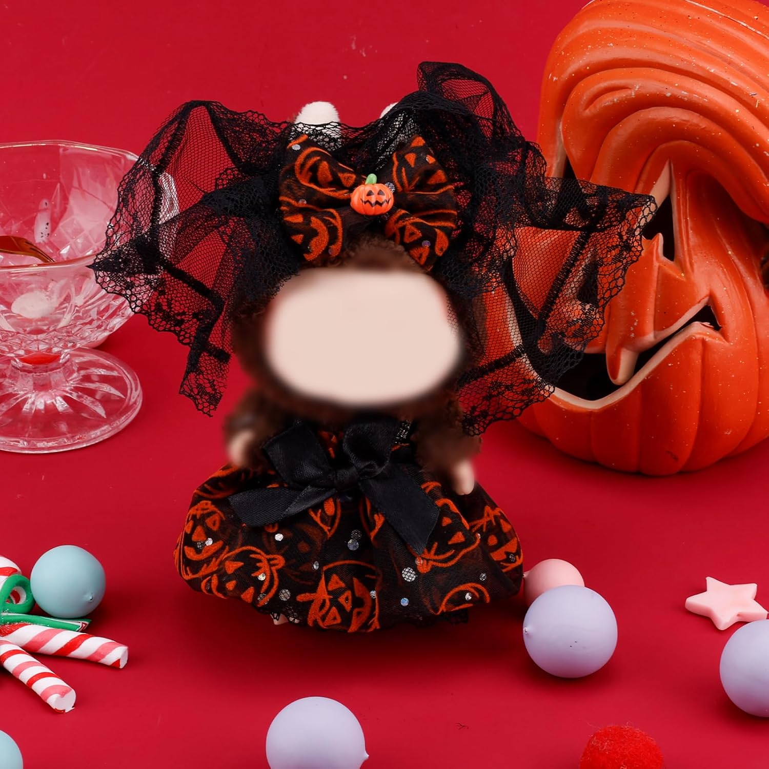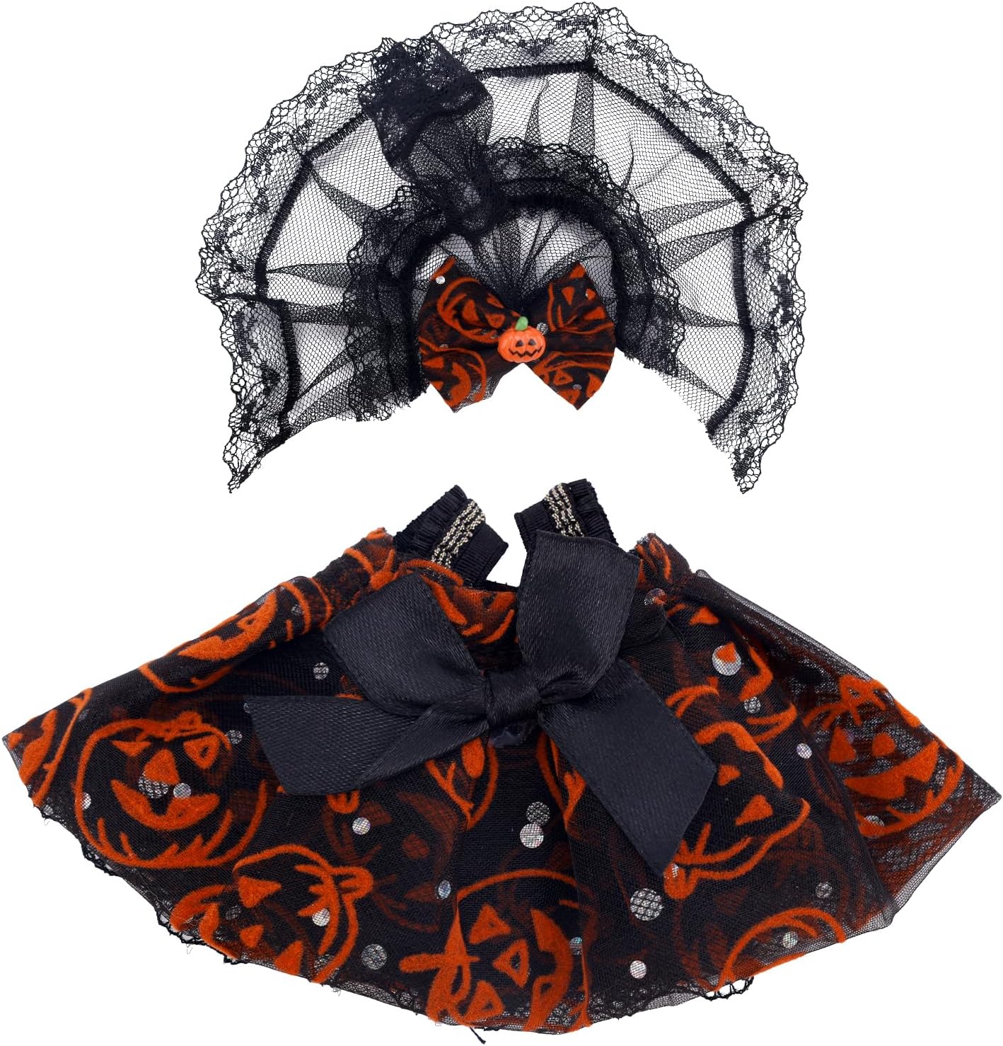 Il pacchetto include: riceverai 1 gonna di zucca carina e 1 velo da prua, che possono anche essere abbinati ad altri accessori di abbigliamento per creare facilmente un look da bambola di Halloween. (Bambola non inclusa) Design del prodotto: la gonna e il velo sono progettati con motivi di zucca arancione, abbinati al colore principale del nero, il design è nuovo e interessante, pieno di atmosfera scura e spaventosa di Halloween. Materiale leggero: questi accessori delle bambole sono realizzati con materiale di garza di buona qualità, fattura raffinata, morbida e confortevole, sottile e leggera, non facile da rompere e sbiadire. Dimensioni adatte: la dimensione della gonna è di 14,5x8,5 cm, le dimensioni del velo sono 17x13 cm, è leggera e facile da indossare ed è molto adatto per una bambola peluche da 17 cm. Ottimo regalo: perfetto per creare un look Halloween horror ma carino, i nostri accessori per abbigliamento per bambole si distinguono in qualsiasi collezione o display di bambole e fare regali ponderati per amanti e collezionisti di bambole.