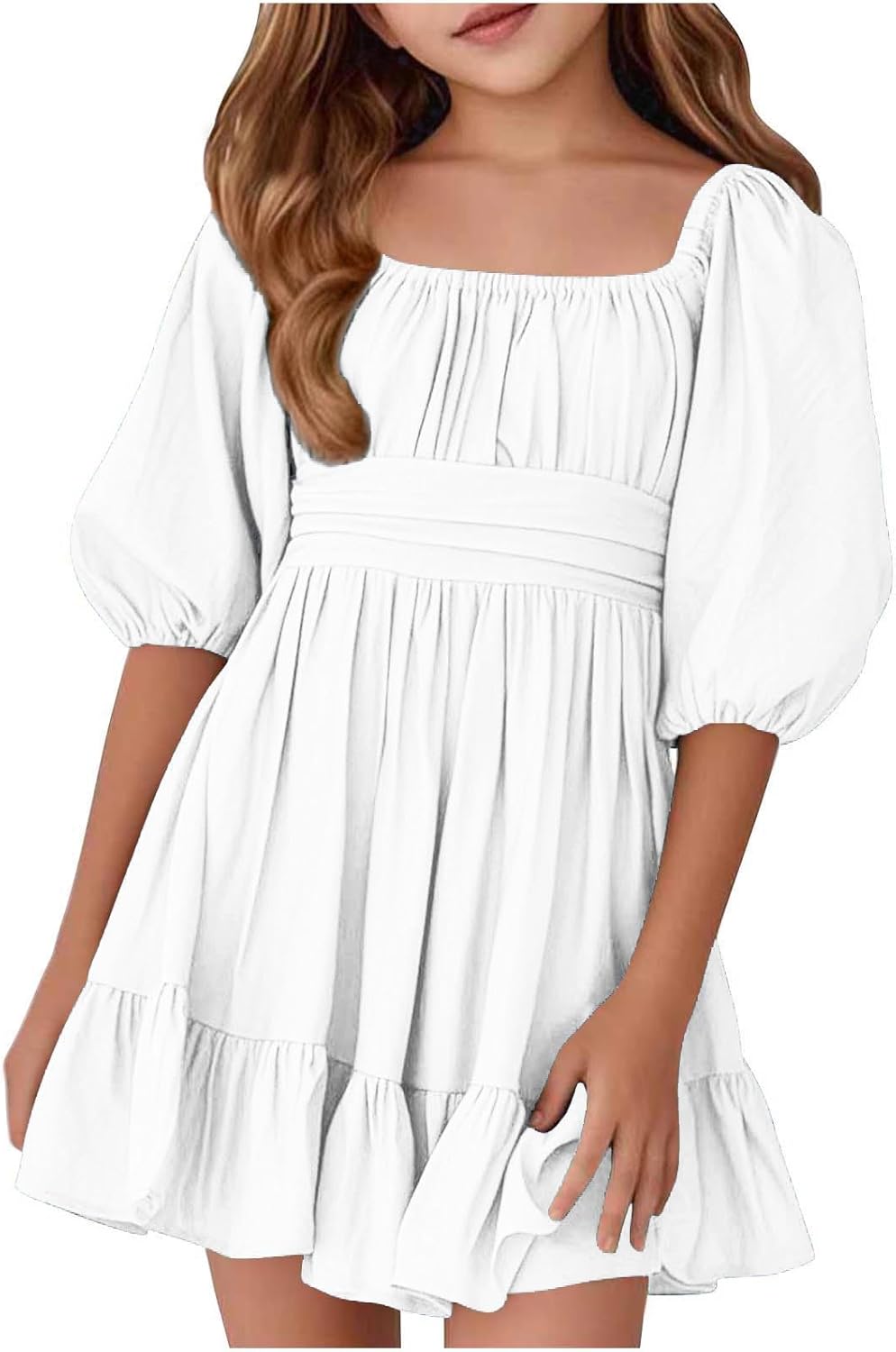 Vestito da ragazza, per il tempo libero, da spiaggia, per adolescenti, lunghezza al ginocchio, per bambini, elegante, a maniche corte, linea ad A, da principessa, per bambini, 3-14 anni