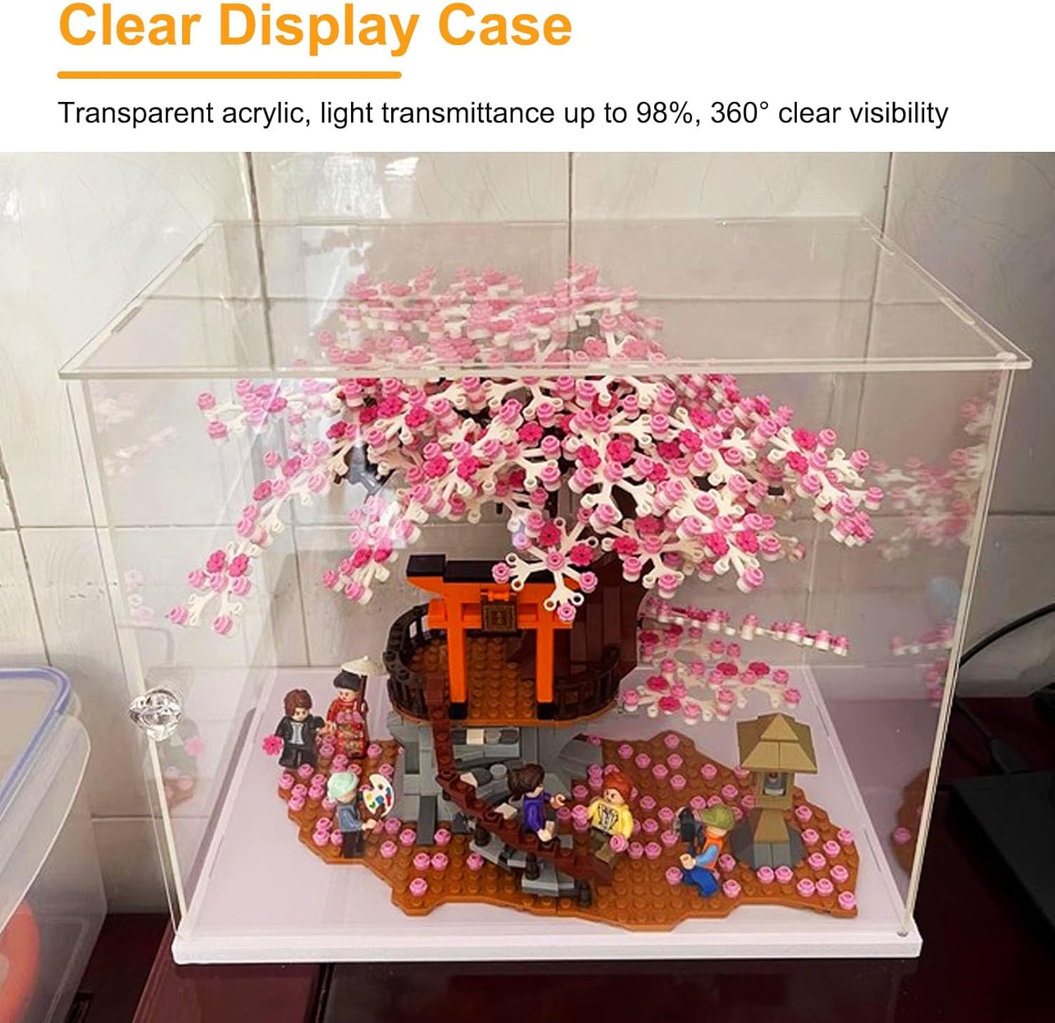 Vetrina da collezione Vetrina in acrilico trasparente con copertura antipolvere, scatola portaoggetti cubica per oggetti da collezione, contenitori trasparenti per figurine e cimeli