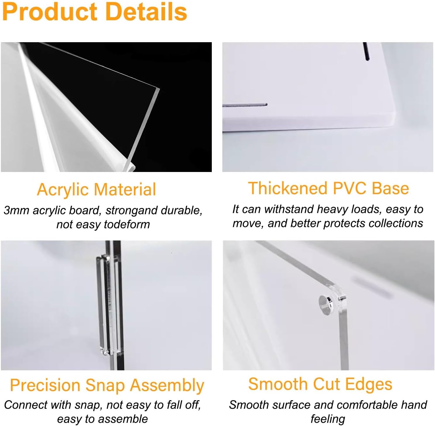Questa vetrina trasparente è resistente alla polvere, ai raggi UV e ai graffi. Ti consente di vedere gli oggetti all'interno in modo chiaro e semplice, proteggendo efficacemente la tua amata collezione. Posizionalo su scrivanie, vetrine, aggiungendo un sapore unico alla tua casa! Specifica: - Materiale: Base in acrilico + PVC - Colore: Trasparente - Colore base: Bianco - Dimensioni: Personalizzabile Caratteristiche: - Acrilico spesso, non facile da deformare - Antipolvere, resistente ai raggi UV e ai graffi - Trasmissione della luce al 98%, visibilità chiara a 360° - Impilabile e salvaspazio - Facile da montare e smontare - Dimensioni personalizzabili Contenuto della confezione: - 1 x vetrina acrilica (articoli decorativi non inclusi) Nota: - Rimuovere prima la pellicola protettiva da entrambi i lati di ciascun pannello acrilico installazione. - Per motivi di luce e lotto, l'immagine e il colore effettivo della merce potrebbero essere leggermente diversi, a seconda della ricezione dell'articolo reale. - Poiché i prodotti vengono misurati manualmente, potrebbe verificarsi un leggero errore di 1-2 cm, per favore capisci. Servizio clienti: - Se hai domande relative al tuo acquisto, ti preghiamo di contattarci il prima possibile. Ti forniremo un servizio eccellente, la tua soddisfazione è la nostra massima priorità!