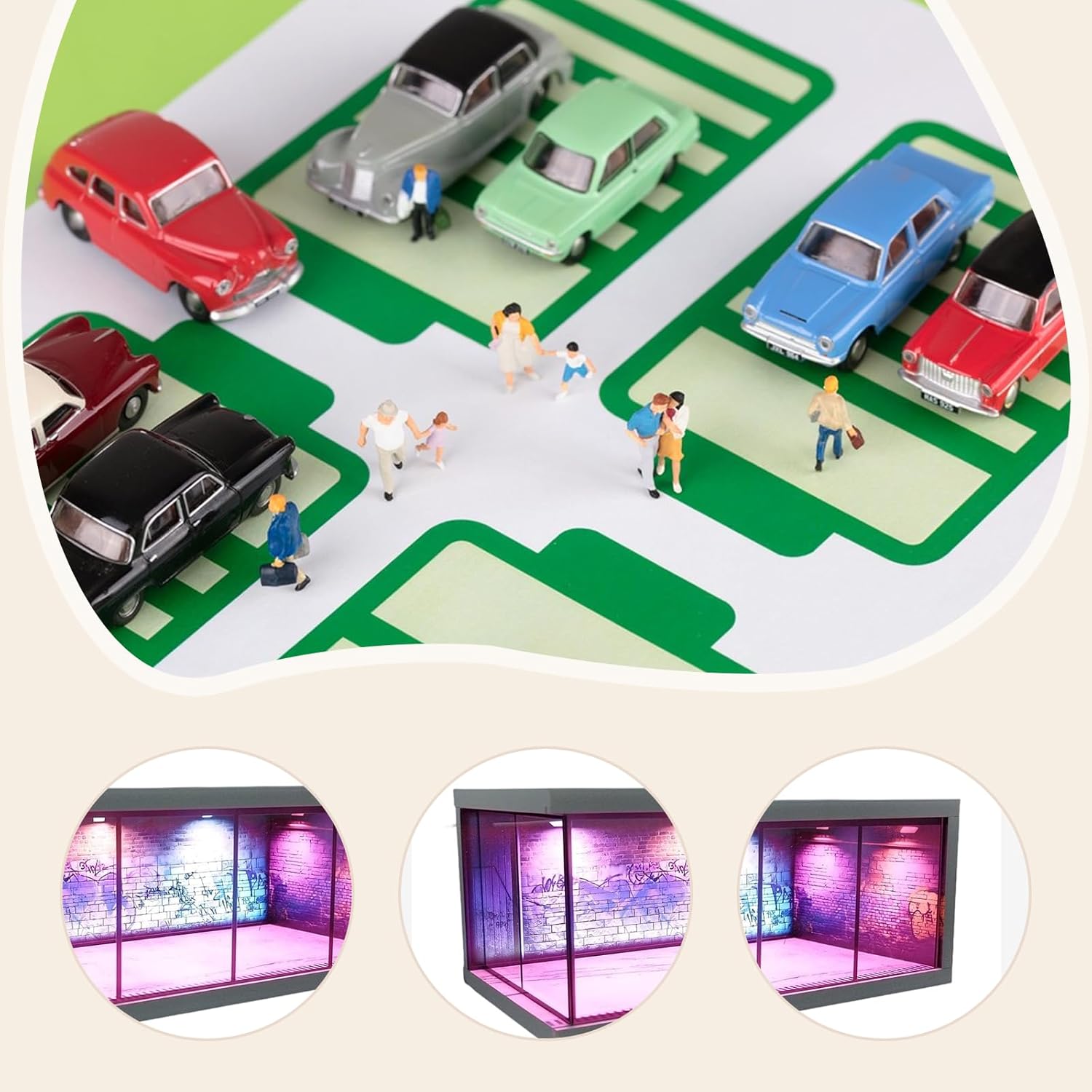 【Materiale】: mini scena di parcheggio per auto in 1:64 realizzata con componenti elettronici in acrilico e pregevole fattura 【Parcheggio con simulazione di scenari in 1/64】: Vetrina espositiva da collezione per riporre ed esporre modelli pressofusi in 1/64 【Ampiamente utilizzato】: vetrina per modellini di auto pressofusi in 1/64 per collezione, esposizione, ufficio, casa, decorazione della scrivania 【Vetrina da garage】: scena di parcheggio simulata in 1/64 con luci, che può essere abbinata a bambole, modelli di auto, oggetti di scena per foto, modelli di parcheggio con scena diorama ecc. 【Regalo】: La vetrina per hobby è un ottimo regalo di compleanno per collezionisti, amici e appassionati di modellismo automobilistico