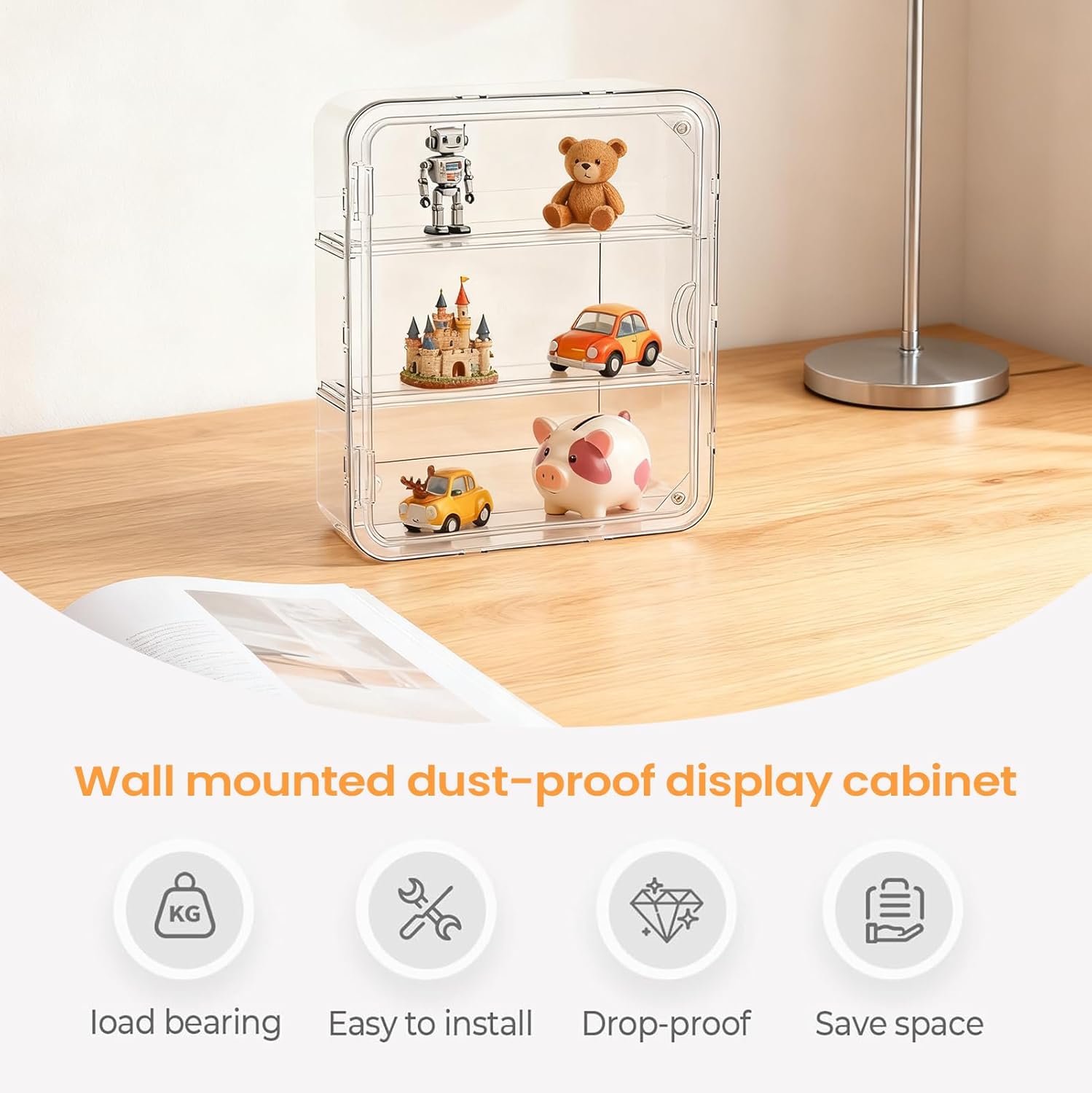 Meccanismo Antiumidità e Polvere: Progettata con una chiusura magnetica, questa vetrina trasparente per figure assicura una soluzione sicura e di facile accesso, prevenendo l'accumulo di polvere e i da umidità per preservare la qualità degli oggetti esposti in contesti come soggiorni o vetrine da collezionista, garantendo una protezione duratura e una manutenzione semplice. Visibilità Ideale e Protettiva: Il materiale acrilico trasparente di questa teca espositiva assicura una visibilità nitida, enfatizzando i dettagli fini ad ogni angolo per una presentazione accattivante che migliora sia l'estetica degli ambienti che la conservazione della collezione senza sforzo. Questo display case offre una protezione affidabile mentre mostra i tuoi oggetti nel modo migliore, adattandosi a qualsiasi spazio con stile ed eleganza. Utilizzo Efficiente dello Spazio: Questa vetrina trasparente si adatta a diverse necessità mediante la capacità di ottimizzare lo spazio verticale, offrendo scelte montabili a parete e impilabili che permettono di risparmiare spazio sul bancone e aumentare lo storage per esposizioni ordinate in qualsiasi ambiente, migliorando l'efficienza e l'ordine in modo semplice e accessibile. Applicazioni Versatili e Funzionali: La vetrina trasparente funge sia da soluzione di archiviazione pratica che da elemento decorativo elegante, migliorando l'organizzazione domestica e aggiungendo un tocco di raffinatezza a camere da letto, o soggiorni. Il design trasparente si integra perfettamente in ambienti diversi, adattandosi a qualsiasi stile di arredamento per creare spazi ordinati e accoglienti, ideali per mostrare oggetti con stile e mantenere ogni ambiente pulito e organizzato Adattabilità Flessibile ed Efficiente: La vetrina per action figure include divisori regolabili, fornendo un modo per organizzare piccoli oggetti come action figure. La sua capacità di adattarsi a dimensioni variabili garantisce un uso efficiente dello spazio, mantenendo una presentazione elegante e ordinata per gli appassionati, che apprezzano la praticità e la versatilità in ogni contesto di conservazione.