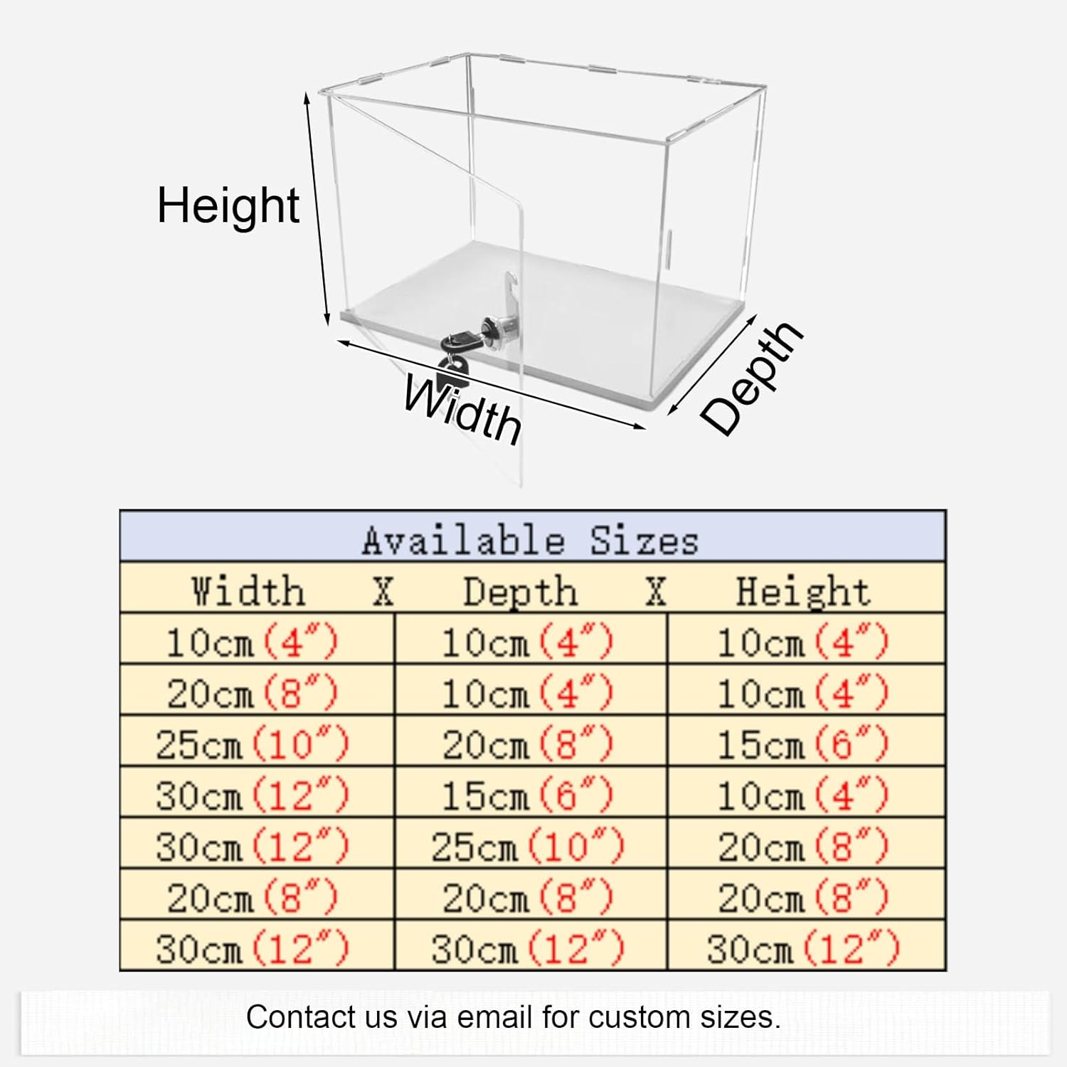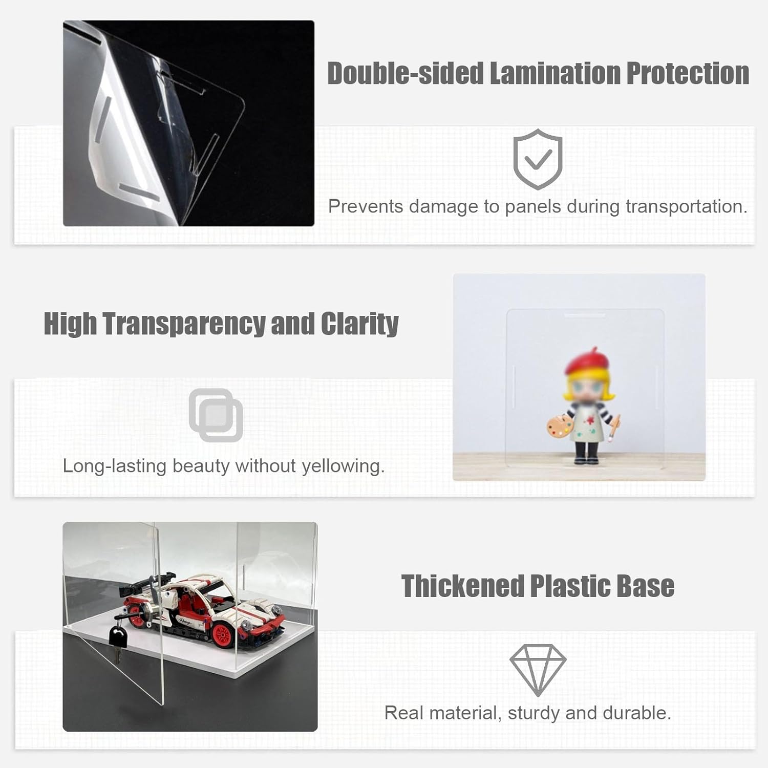Mostra e proteggi la tua collezione con questa vetrina in acrilico. Progettato per proteggere i tuoi oggetti da polvere e sporco, il materiale acrilico trasparente e resistente esalta la bellezza della tua collezione. Questa vetrina è un'aggiunta ideale a qualsiasi stanza della tua casa, garantendo che i tuoi tesori rimangano visibili e ben conservati. Perfetto per collezionisti e appassionati Mostra la tua collezione con la nostra vetrina in acrilico di alta qualità. Realizzato con pannelli acrilici trasparenti spessi 3 mm e una base in PVC spessa 8 mm. Questa soluzione di visualizzazione elegante e moderna migliora la visibilità e mantiene i tuoi oggetti organizzati. Perfetto per hobbisti e collezionisti, aggiunge un tocco di raffinatezza a qualsiasi stanza. Ideale per esporre figure, modelli e cimeli. 【Soluzione di visualizzazione versatile】 Queste scatole da esposizione in acrilico sono perfette per esporre oggetti da collezione, cimeli sportivi, giocattoli, figurine, bambole, action figure, souvenir, modelli, statue e sculture. Inoltre, questa vetrina esalta la bellezza degli articoli elencati, rendendoli più attraenti e accattivanti. 【Facile da montare】 La struttura unica e innovativa della scatola in acrilico trasparente la rende molto facile da montare, con un design senza colla e pannelli tagliati con precisione che non richiedono abilità per dare alla tua stanza un'esperienza visivamente accattivante. Multiuso: queste vetrine in acrilico sono adatte per esporre oggetti da collezione, cimeli sportivi, giocattoli, figurine, bambole, action figure, souvenir, modelli, statue, sculture, ecc. Inoltre, questa vetrina può evidenziare la bellezza degli oggetti di cui sopra e renderli più attraenti.