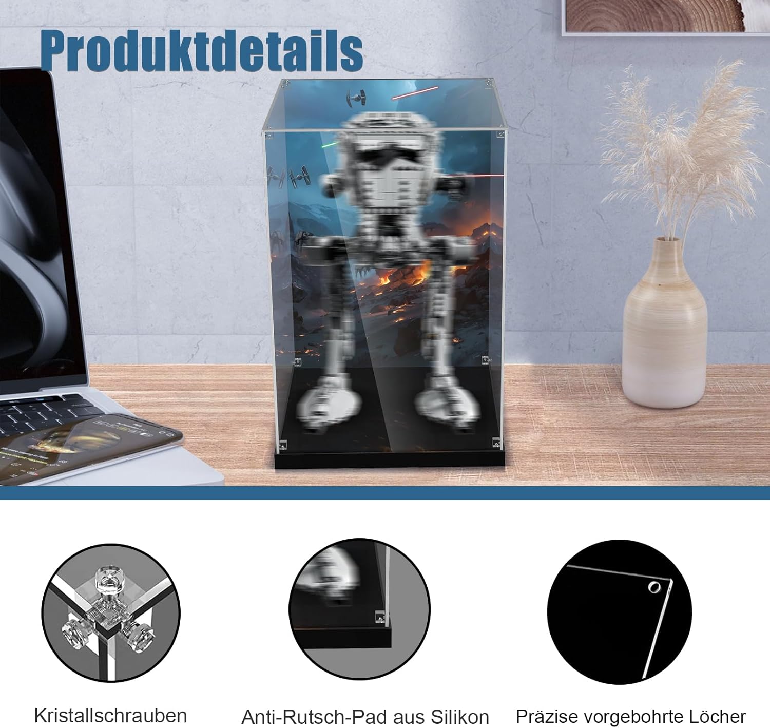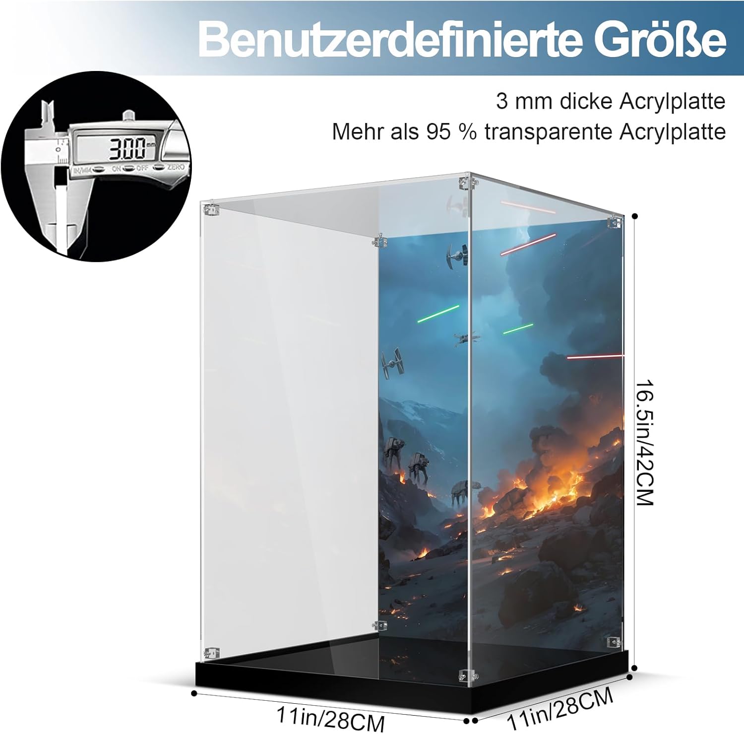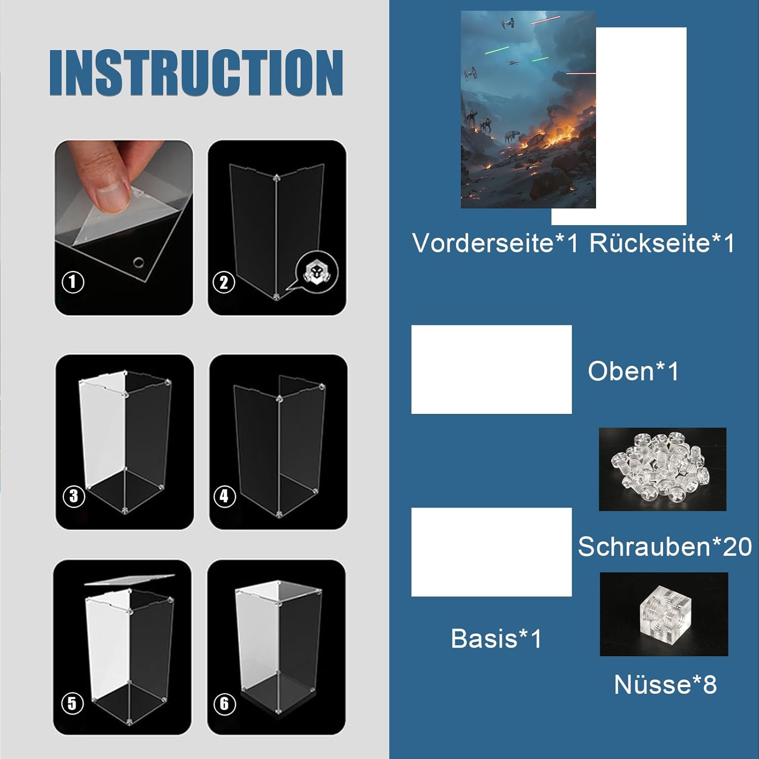 Progettata appositamente per Lego 75417: con pannello posteriore stampato in HD e dimensioni personalizzate, la nostra vetrina in acrilico si adatta perfettamente al tema del tuo amato modello AT-ST Walker. Il design elegante e minimalista e l'aspetto trasparente creano uno straordinario effetto visivo che si integra perfettamente in qualsiasi ambiente. PROTEZIONE E ANTIPOLVERE: questa scatola da esposizione protegge i tuoi elementi costitutivi da polvere, umidità e danni mantenendo l'integrità e garantendo la perfetta presentazione dei modelli 75417. Non ingiallisce facilmente ed è molto facile da pulire. Materiale di alta qualità: dotata di pannelli acrilici di alta qualità spessi 3 mm, base spessa 2 cm e viti in cristallo con dadi, la vetrina ha trasparenza ad alta definizione ed eccellente resistenza agli urti, che rende la visione più realistica e garantisce anche un'eccellente durata e stabilità. MULTIUSO - Questa vetrina in acrilico è perfetta per raccogliere, conservare ed esporre i blocchi Walker 75417 AT-ST e altri modelli di dimensioni uguali o inferiori. Anche un ottimo regalo per i collezionisti di modellini di costruzioni e una bella decorazione per la casa, l'ufficio o dove preferisci. SOLO LA VETRINA: Tieni presente che è in vendita solo la vetrina in acrilico. Il modello e gli elementi costitutivi non sono inclusi. Tutti i modelli di elementi costitutivi nelle immagini sono di riferimento. Ci impegniamo a fornire ai nostri clienti prodotti eccezionali e un servizio di qualità. Se avete domande, non esitate a contattarci.