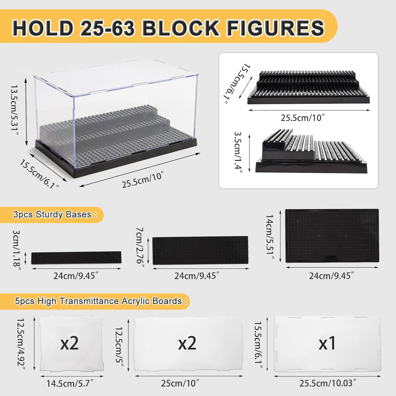 【Archiviazione di grande capacità】: ti consigliamo di acquistare più di 2 vetrine per minifigure LEGO insieme, che possono fornire più spazio di archiviazione per le tue minifigure. Le dimensioni assemblate della vetrina in acrilico sono 25,5*15,5*13,5 cm (10,04*6,1*5,31 pollici), possono contenere 25-63 figure per mantenere la tua collezione ordinata e organizzata. La vetrina Lego è appositamente progettata per esporre la tua collezione di figurine. Non devi più preoccuparti dei giocattoli a blocchi disordinati! 【Tre piastre base per blocchi di assemblaggio gratuiti】: la vetrina per minifigure viene fornita con 3 piastre base mobili (figure non incluse), puoi assemblarle liberamente in base alle tue esigenze e questa vetrina LEGO può costruire fino a 3 strati di piastra base per blocchi a gradini. Puoi combinare e organizzare liberamente la scatola espositiva in acrilico per creare più scene e ottenere più gioia dalla tua collezione. 【Vetrina antipolvere】: la copertura antipolvere di questa scatola trasparente per la mostra Lego è realizzata in materiale acrilico ad alta trasparenza, trasparenza fino al 98%! Mostra le tue figurine, figurine, mattoncini, blocchi e altri oggetti da collezione in una visione chiara a 360 gradi. La vetrina del set Lego è adatta per ogni occasione, come Natale, compleanni, festa dei bambini o altre celebrazioni festive sull'esposizione delle minifigure. Facile da installare/smontare e riporre: la scatola espositiva LEGO è progettata con una struttura a tenone a mortasa, anche coloro che sono nuovi al montaggio lo troveranno semplice da montare o smontare in 2-3 minuti. Non sono necessari strumenti o colla, basta unire i due lati in basso e in alto. Facile da riporre e più pratico da realizzare! 【Compatibilità con vetrina in acrilico】: la piastra di base di questa vetrina ha un diametro di 5 mm ed è compatibile con la serie di minifigure LEGO e la maggior parte dei modelli di elementi costitutivi come personaggi in vinile, blocchi di mattoncini, macchinine, ecc. La vetrina in acrilico può essere utilizzata in libreria, mobile TV, scrivania del computer, può anche essere utilizzata in camera da letto, soggiorno, sala studio, studio, museo, biblioteca, negozio al dettaglio e altri luoghi.