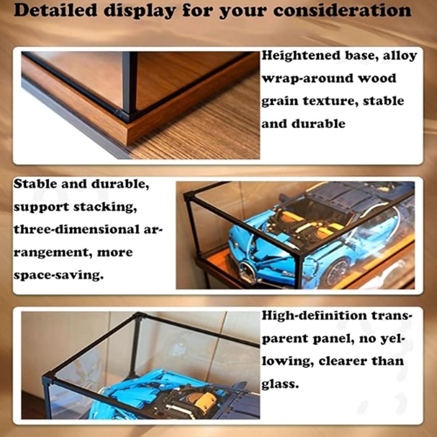 La vetrina in acrilico modello auto da corsa 42207 ha una struttura robusta, infrangibile e indeformabile e può contenere qualsiasi oggetto più piccolo di queste dimensioni. TRASPARENTE E ANTIPOLVERE - La vetrina acrilica è trasparente al 98%, consentendoti di visualizzare chiaramente i tuoi modelli e di tenere lontana la polvere. Materiale: vetrina realizzata in materiale acrilico di alta qualità e taglio laser ad alta precisione, la superficie è priva di graffi e sbavature, liscia al tatto ed è più chiara e bella. Anche dopo un uso prolungato, non ingiallisce e può comunque visualizzare chiaramente il modello. FACILE INSTALLAZIONE - La vetrina è molto facile da montare, abbiamo creato una struttura di montaggio innovativa che non si sfalda durante il montaggio o lo spostamento, puoi montarla in pochi minuti senza problemi. La vetrina in acrilico trasparente è cristallina, più resistente e leggera del vetro. Fornisce un'eccellente protezione a 360° per i modelli, migliora la qualità di visualizzazione ed è il palcoscenico perfetto per i modelli.