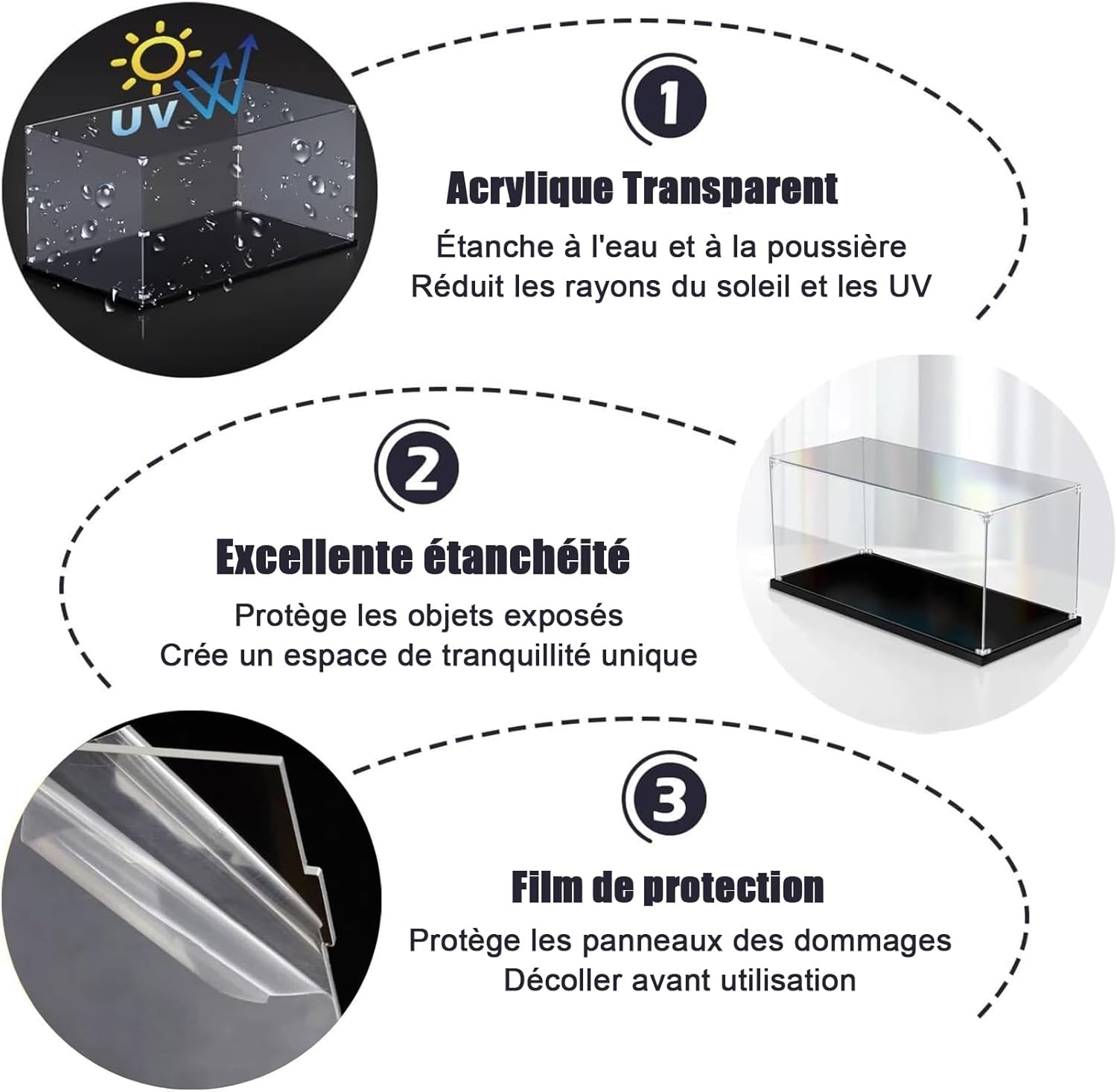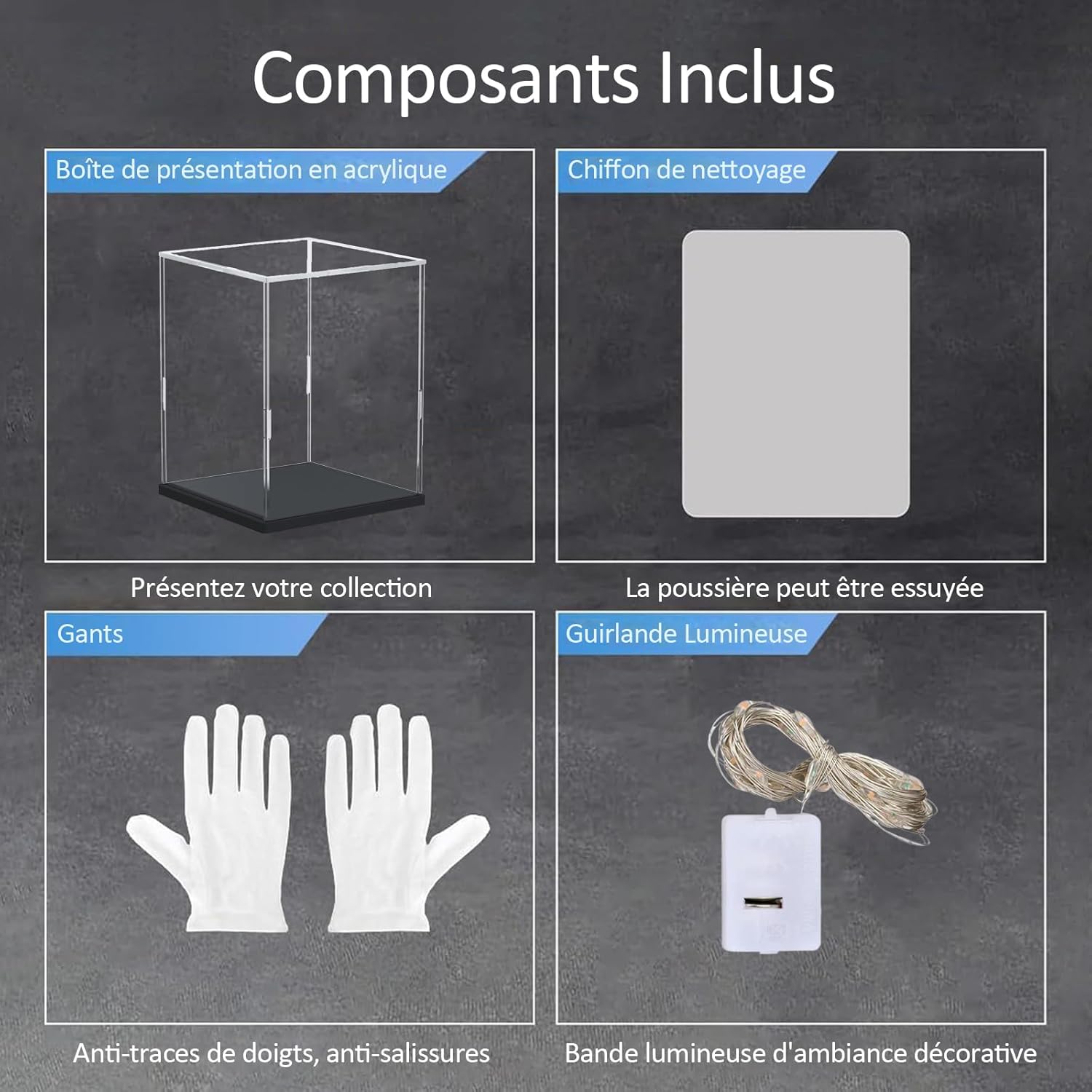 | Pièces incluses | 1 x Chiffon, 1 x Gants, 1 x Vitrine en acrylique, 1 x Guirlande Lumineuse |